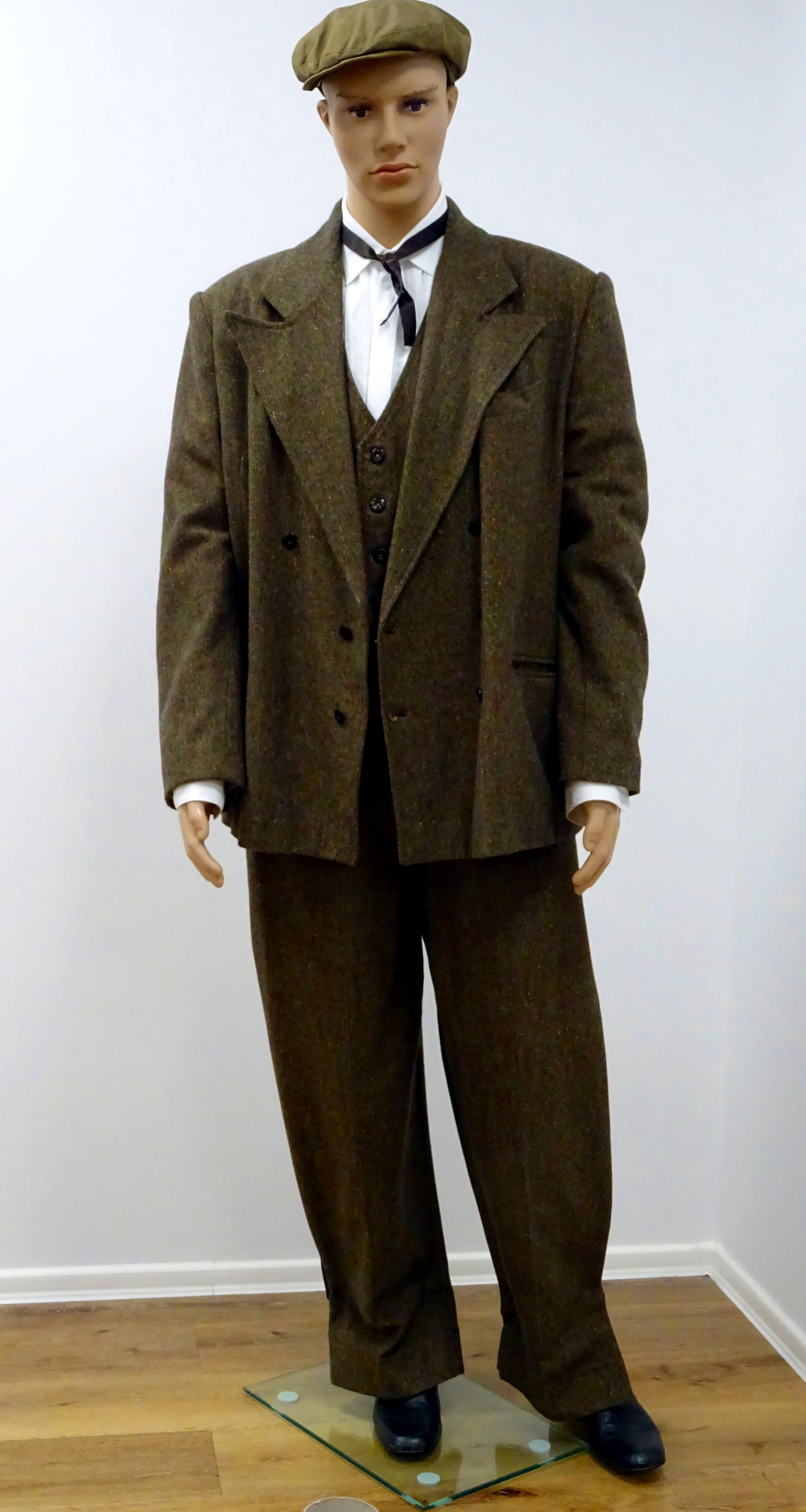 Anzug, 3 teilig:Jacke 2reihig-Hose-Weste, braun Tweed, 50er Jahre, braun