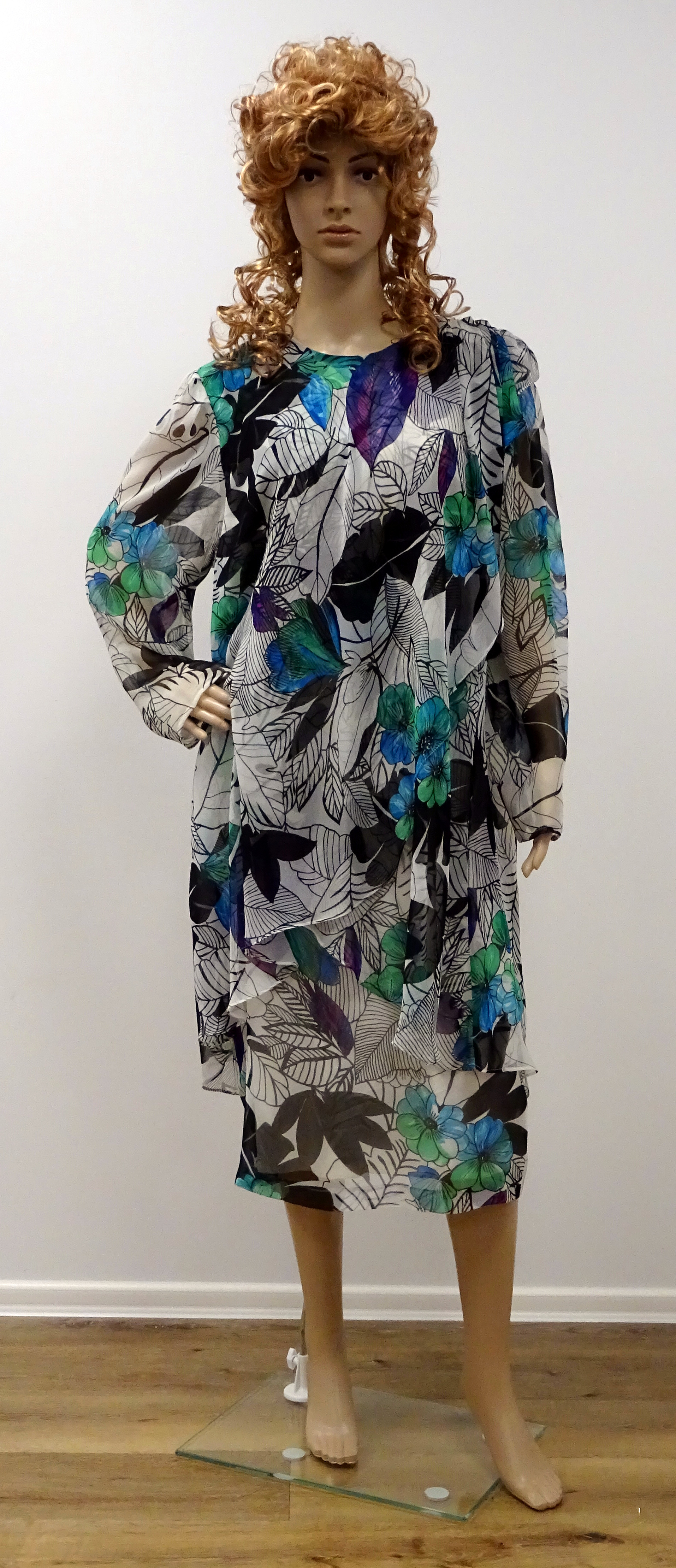 Kleid schwarz-weiß mit Blumen, 80er Jahre, Erwachsene