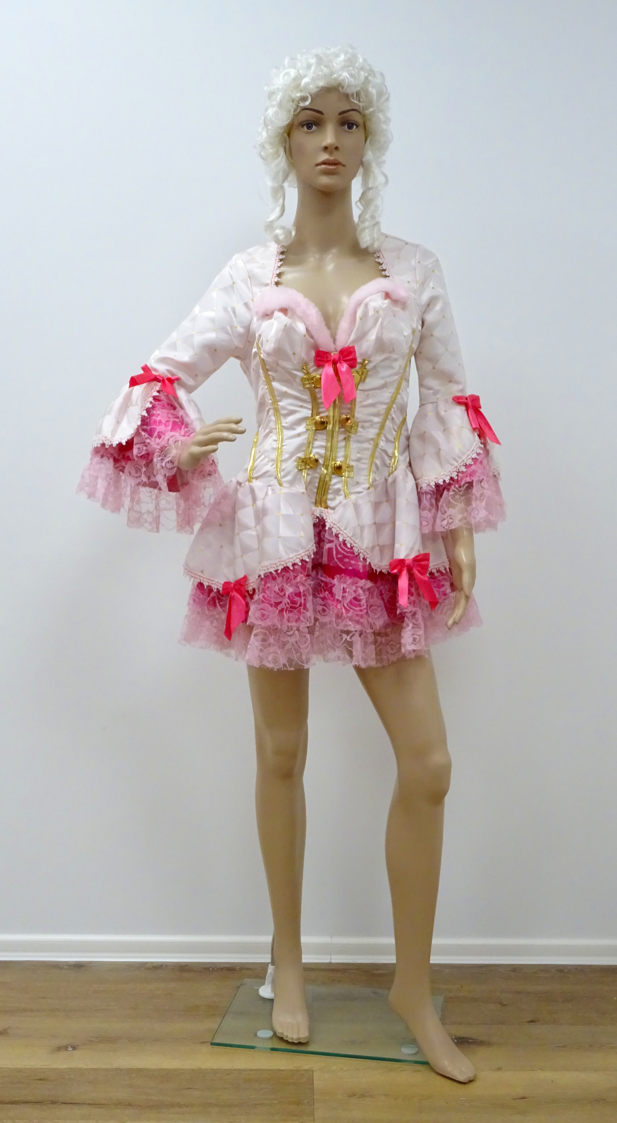 Barockkleid Mon Ami, rosé / gold, kurz, Steppoptik, Rüschen und Schleifen pink