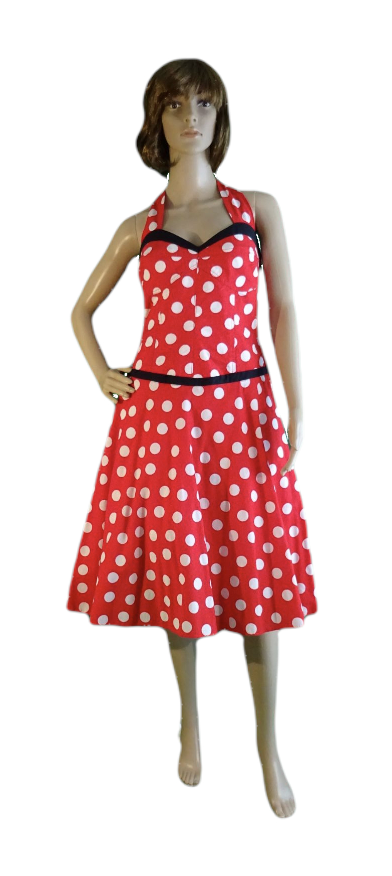 Corsagenkleid: rot mit weißen Punkten