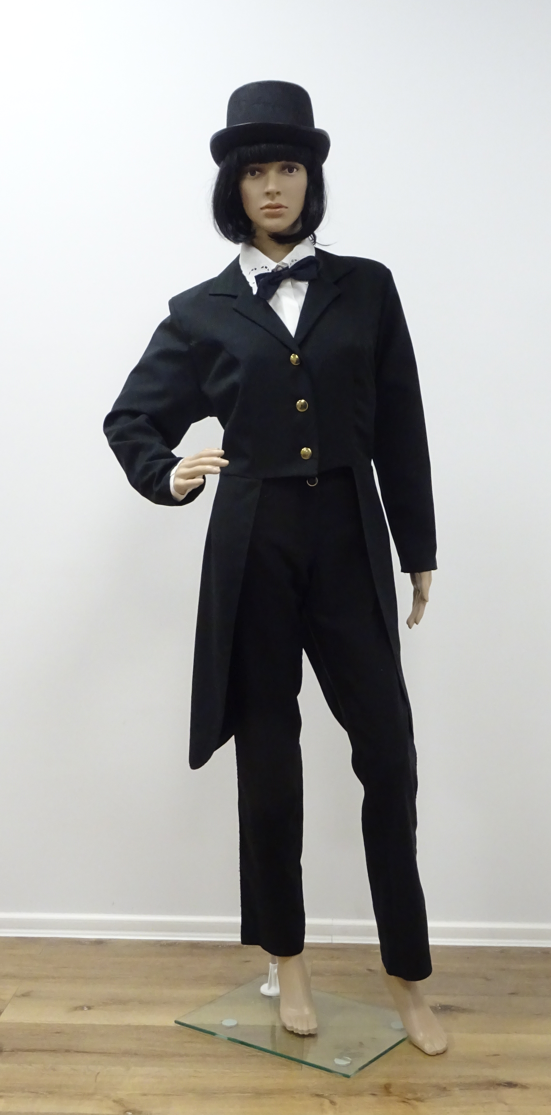 Damenfrack, schwarz. Weitere gleiche Artikel F107-F110, F135-F139
