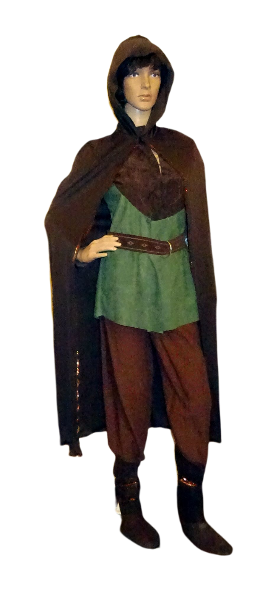Hose braun, Cape braun lang, Oberteil grün grau, Gürtel, Stulpen, Junioren. Weitere gleiche Artikel TG1438, TG1439