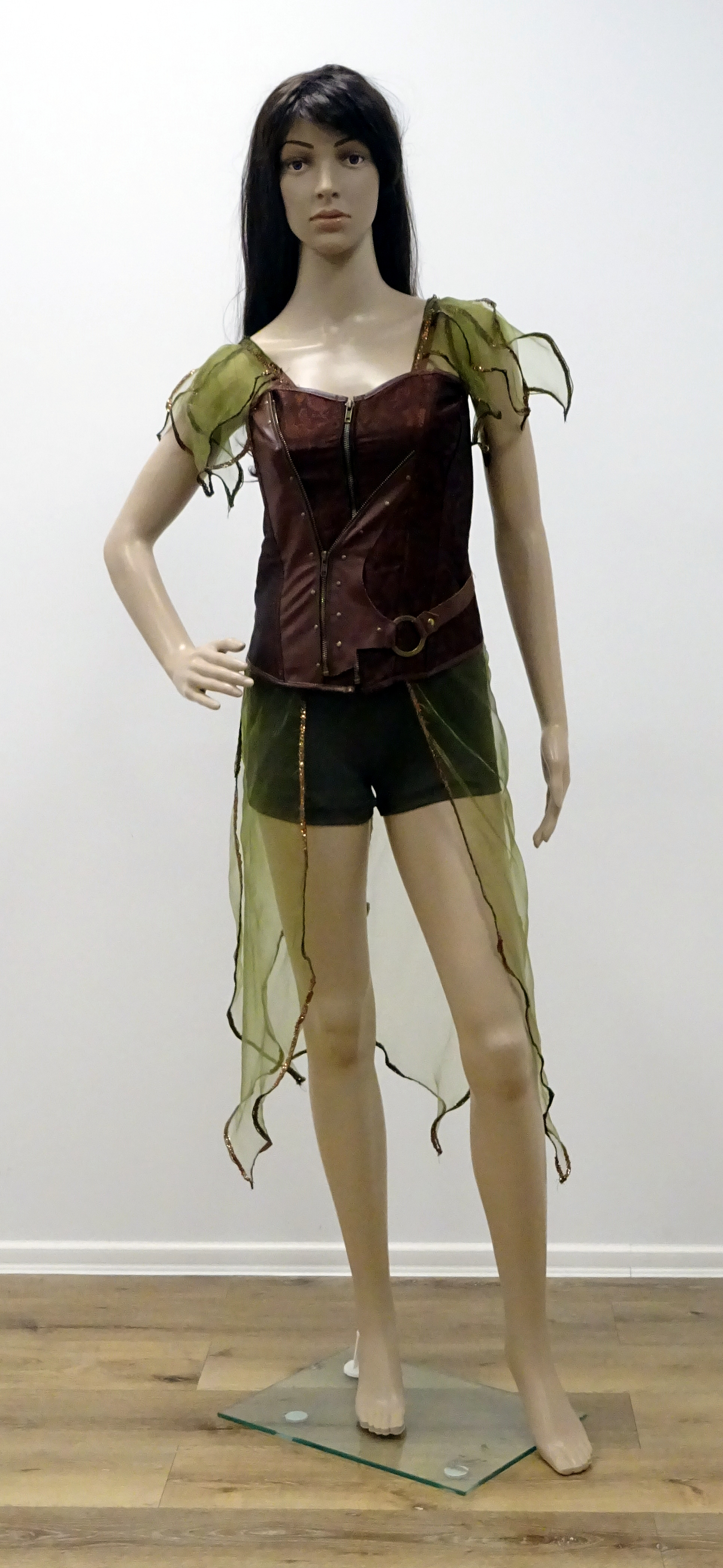 grüne Hose eng kurz, Corsage d. rot, Stulpen, Blättercape Taft, grün, Junioren, Erwachsene. Weitere gleiche Artikel TG1382-TG1399