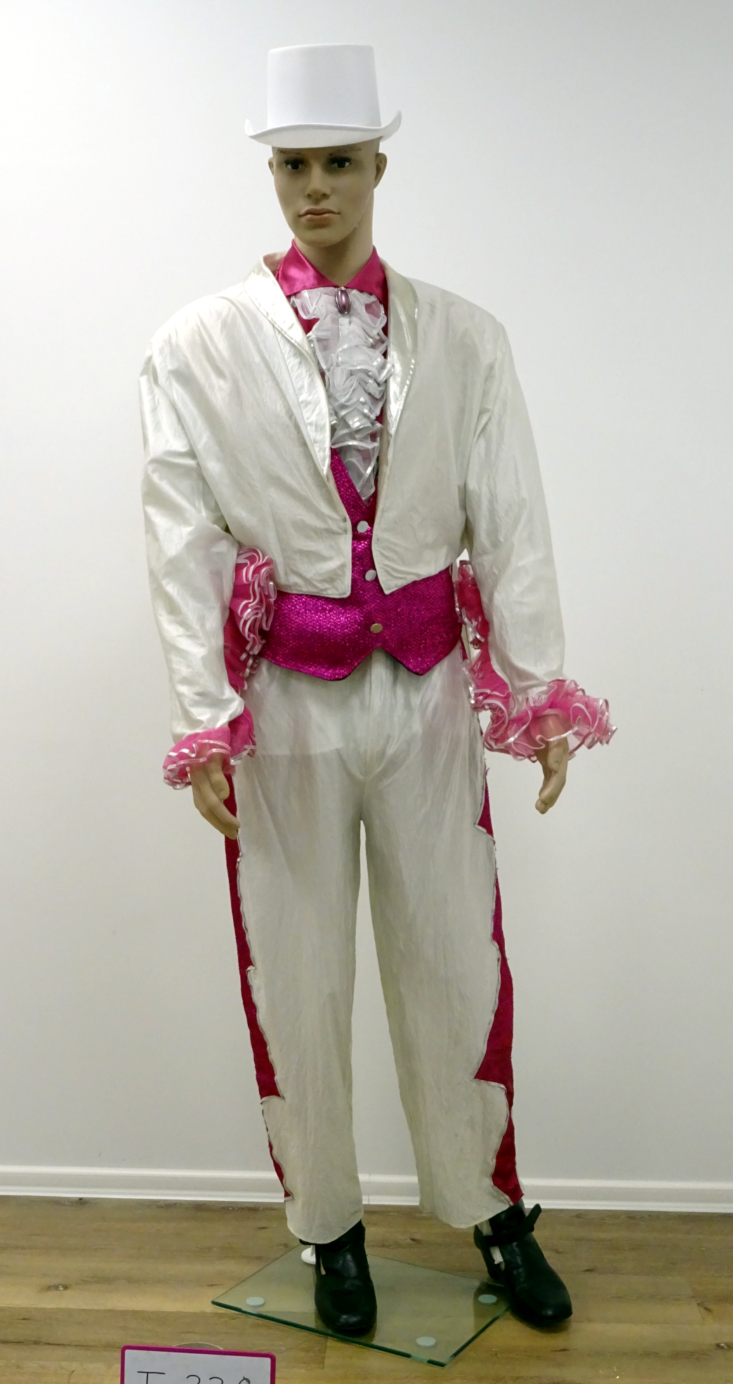 Fred Astair:Frack, Hose, Hemdweste, Zylinder, weiß-pink