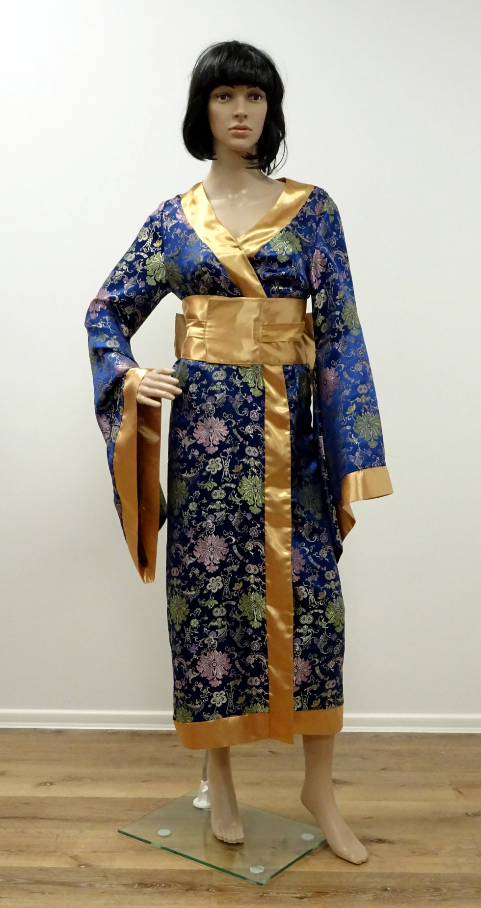 Geisha, Kimono mit Gürtel und Schleife, blau-gold. Weitere gleiche Artikel J112-J114