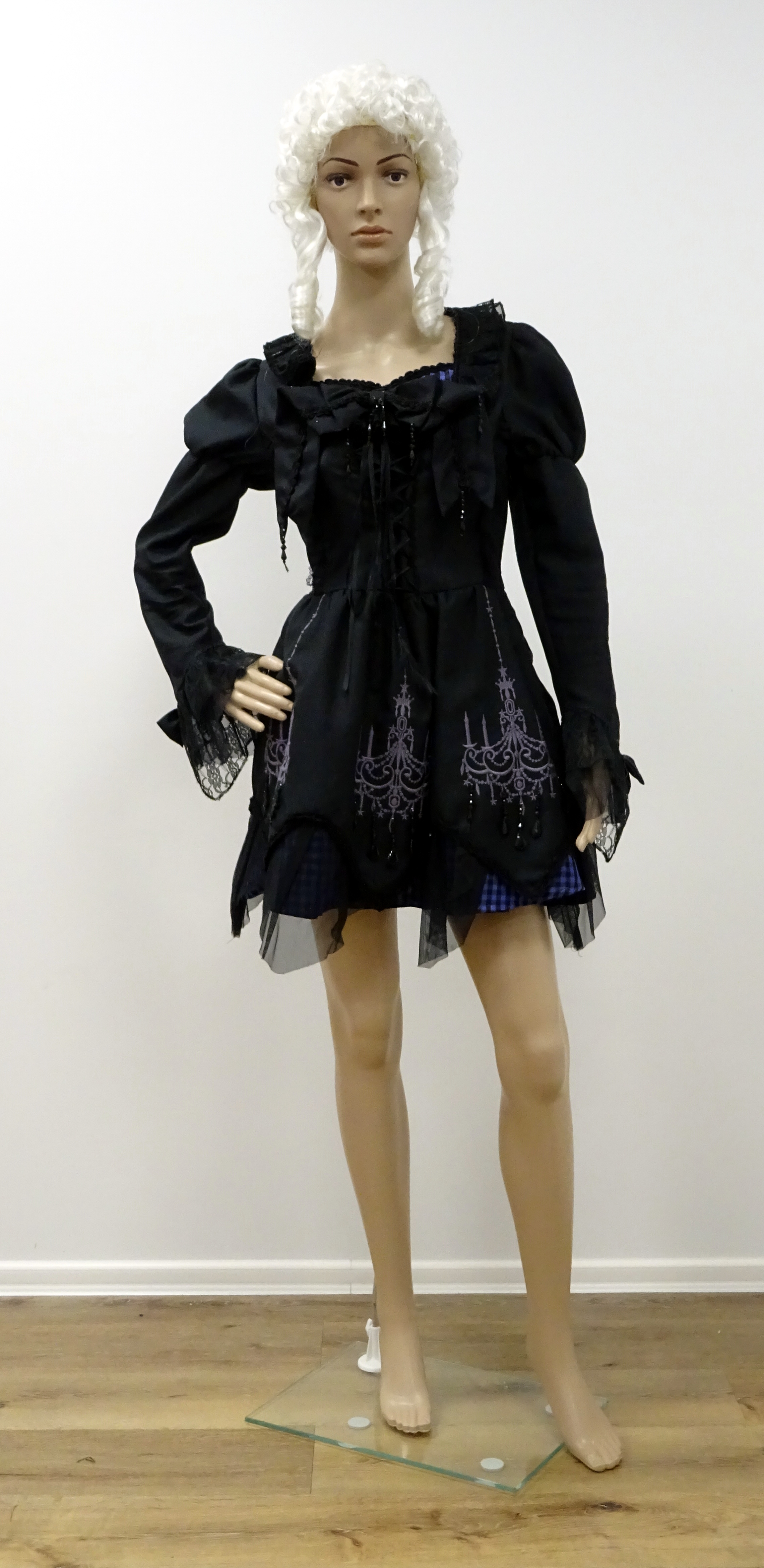 Hexenkleid schwarz vorn geschnürt, Rock Lüster appliziert. Weitere gleiche Artikel H2001, H2002