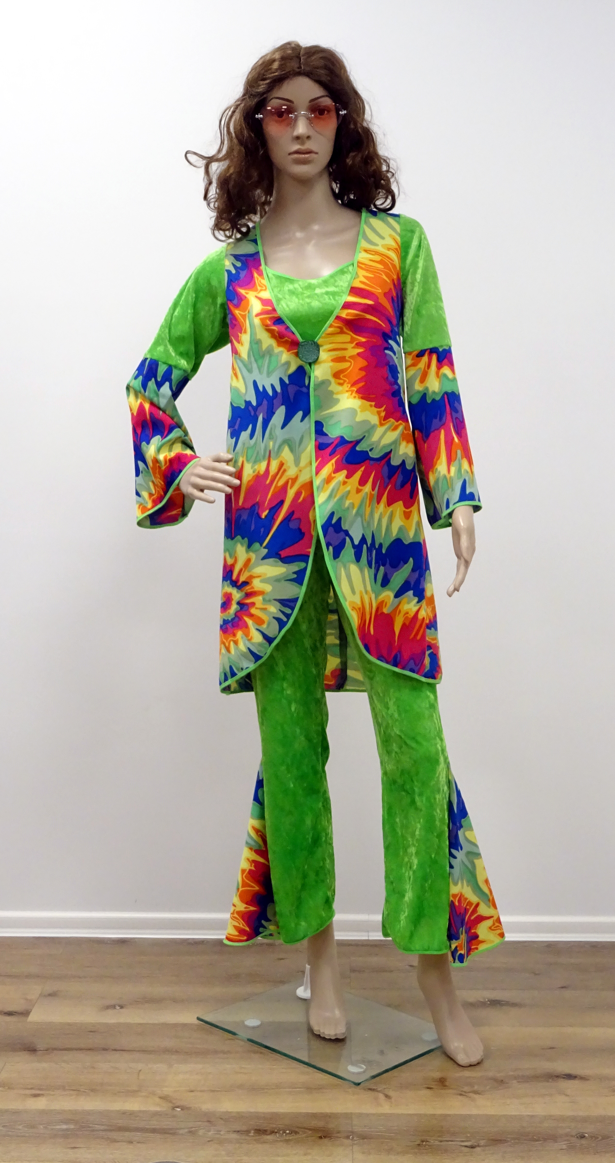 Hippy-Mädchen, Jacke mit angenähtem Topp und Hose, grün-bunt