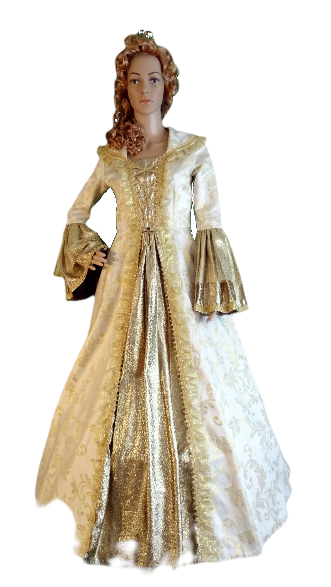 Isabell: Barockkleid mit Spitze u. Goldbrokat, creme-gold. Weitere gleiche Artikel I145, I147