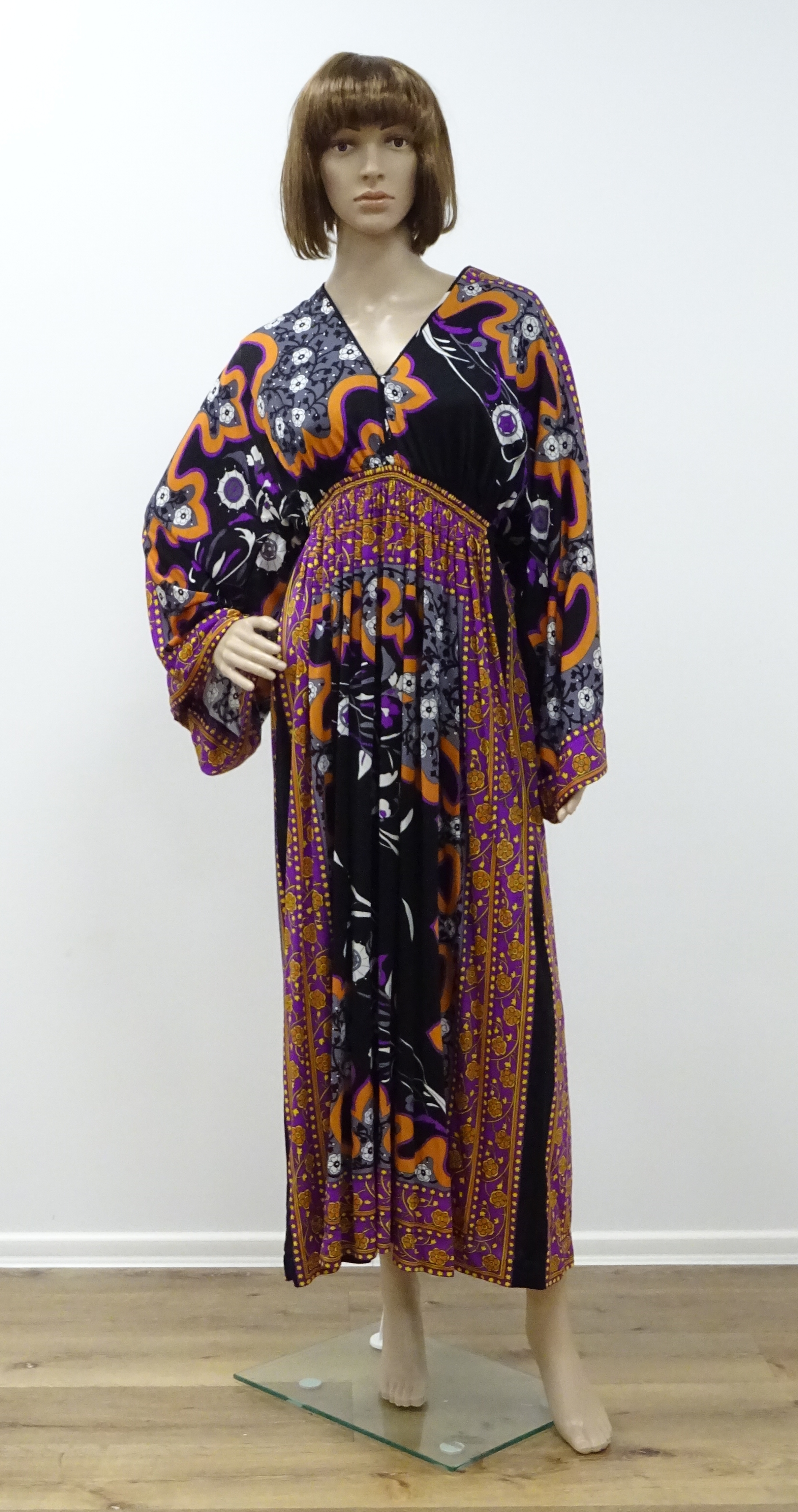 Sommerkleid, 70-er Jahre, schwarz, lila