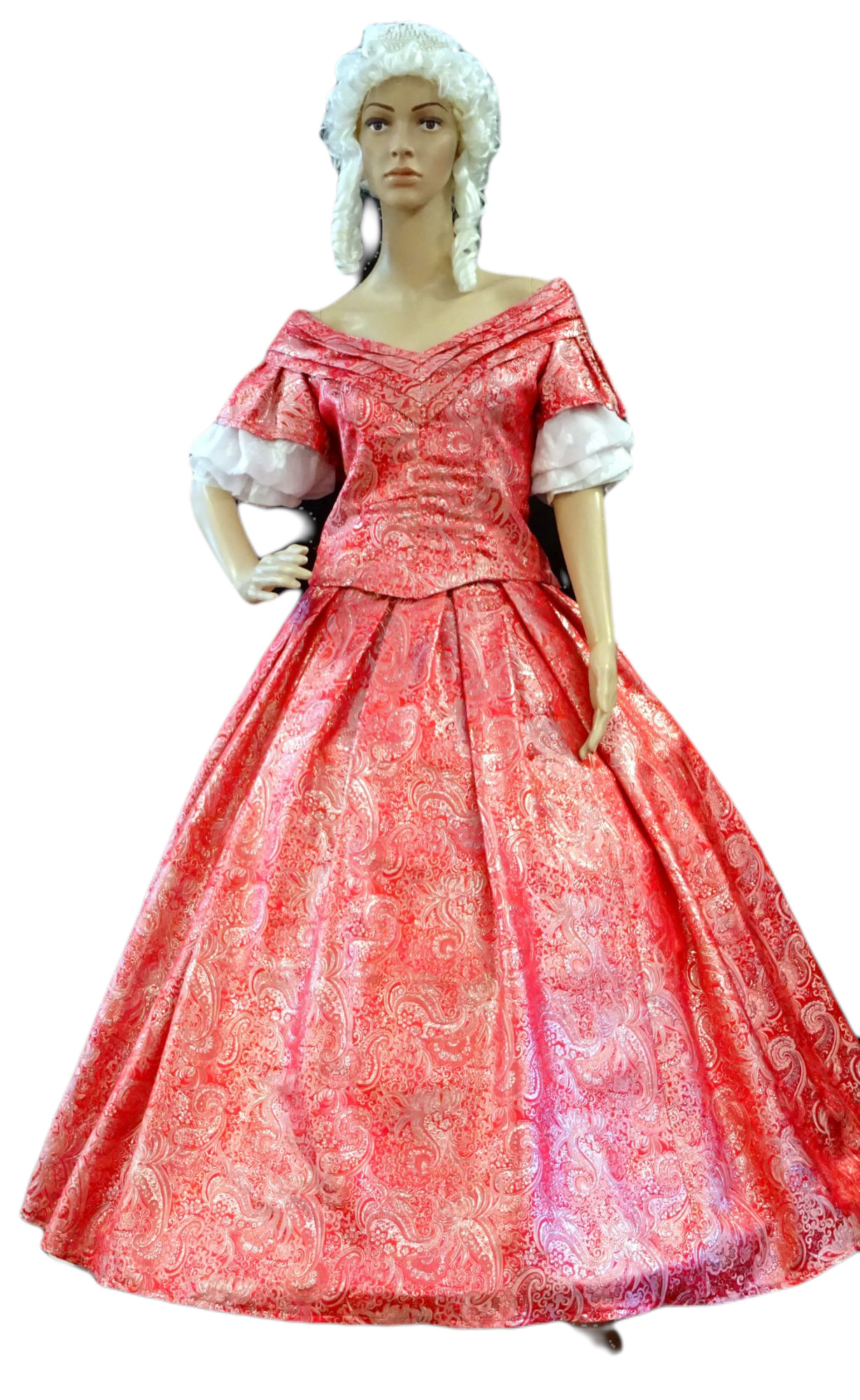 Kleid Königin Elisabeth 3-teilig:Oberteil mit Rückenschnürung, Rock - rot/silber; Schärpe - silber