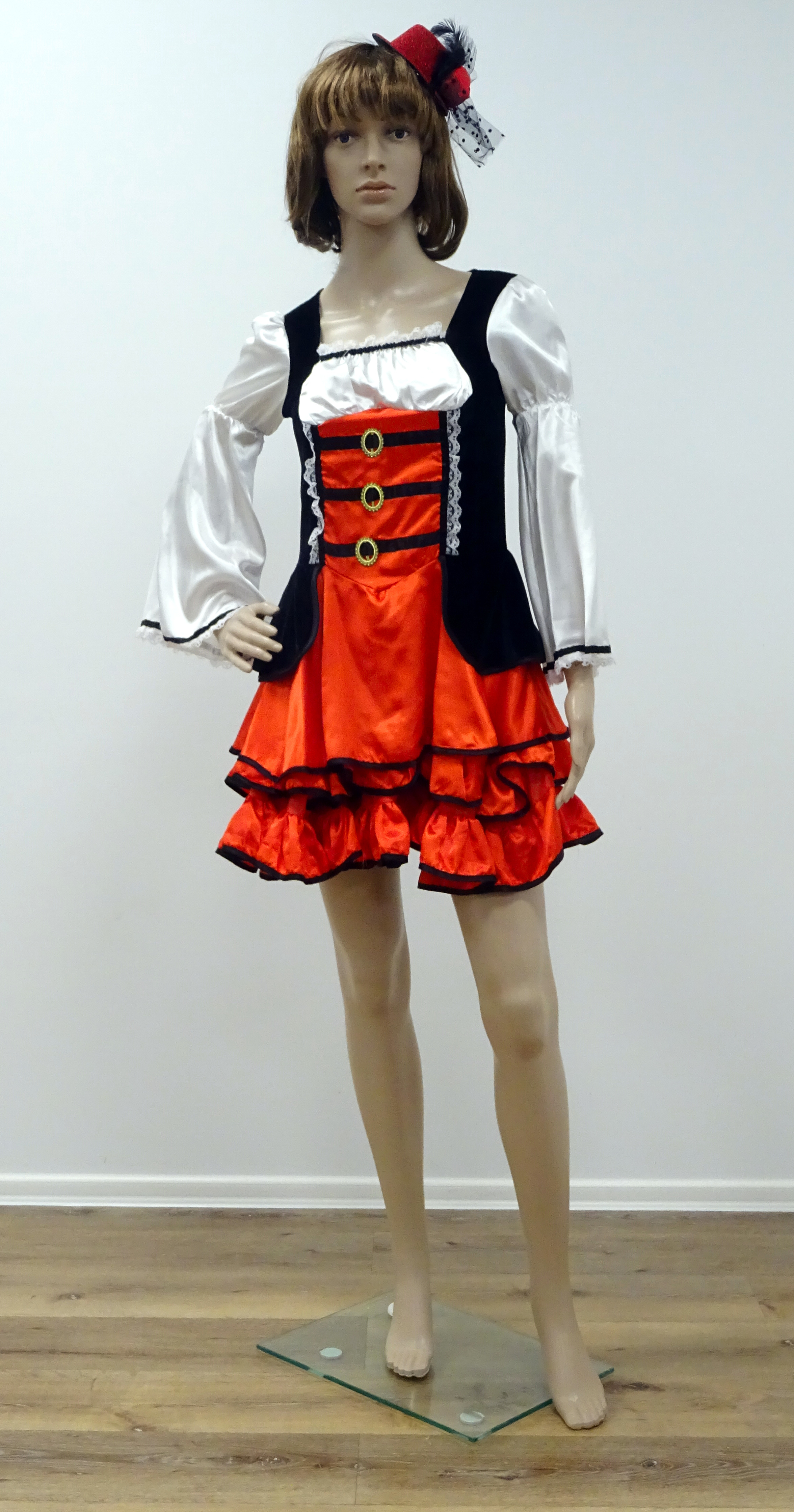 Kleid Piratin, roter Rock, weiße Bluse, Corsage schwarz, Gestiefelter Kater. Weitere gleiche Artikel TG1806-TG1816D