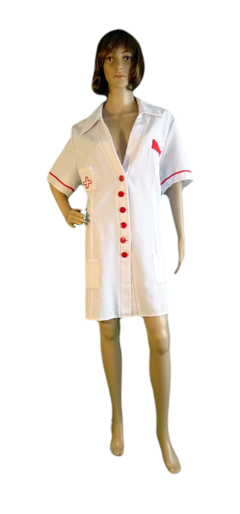 Krankenschwester, große Kopfbedeckung und Kittel weiß