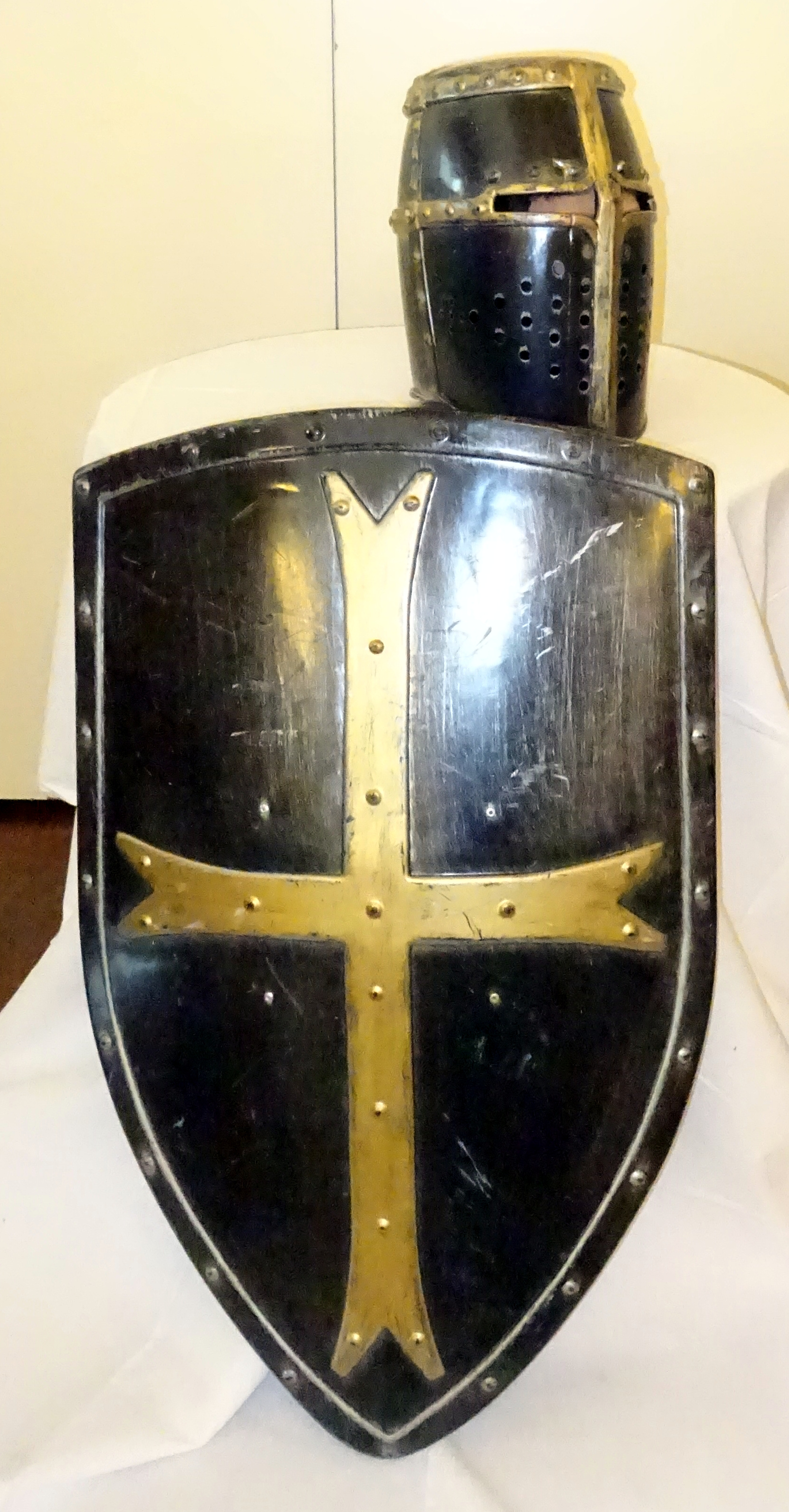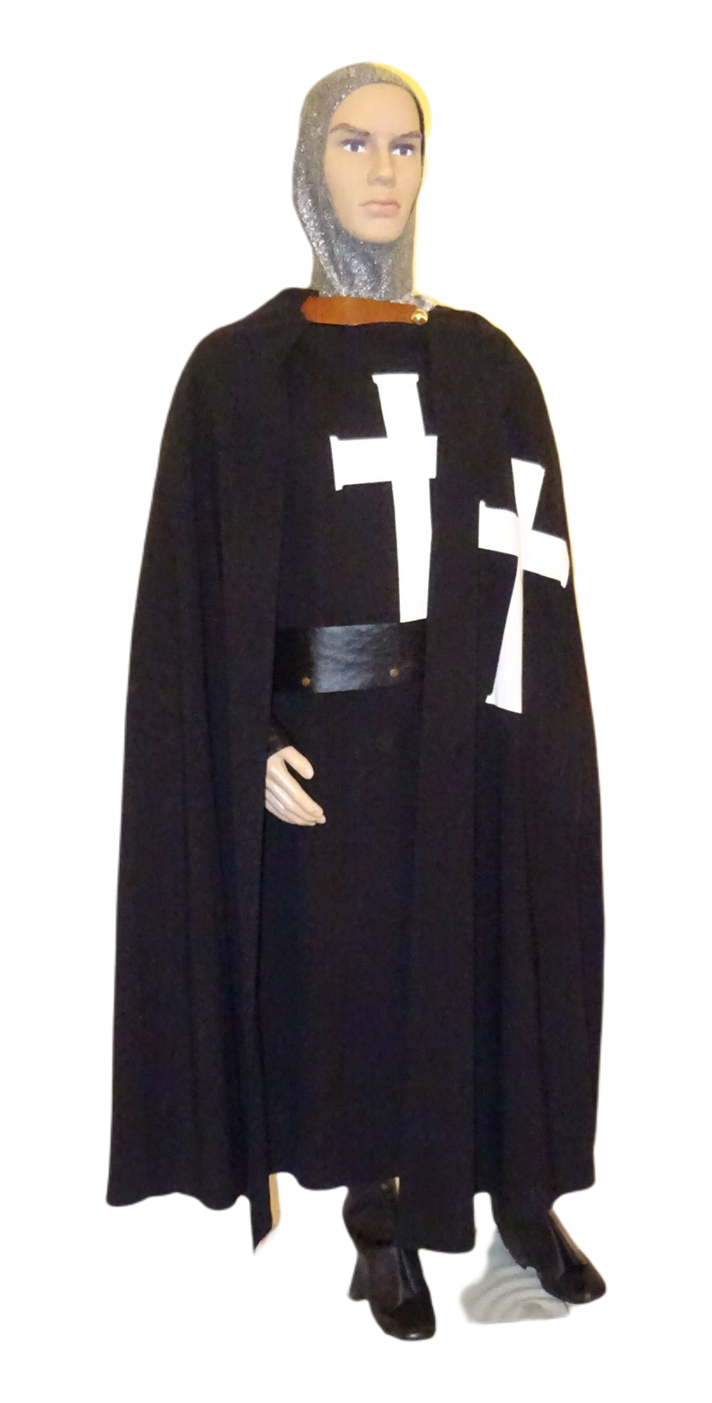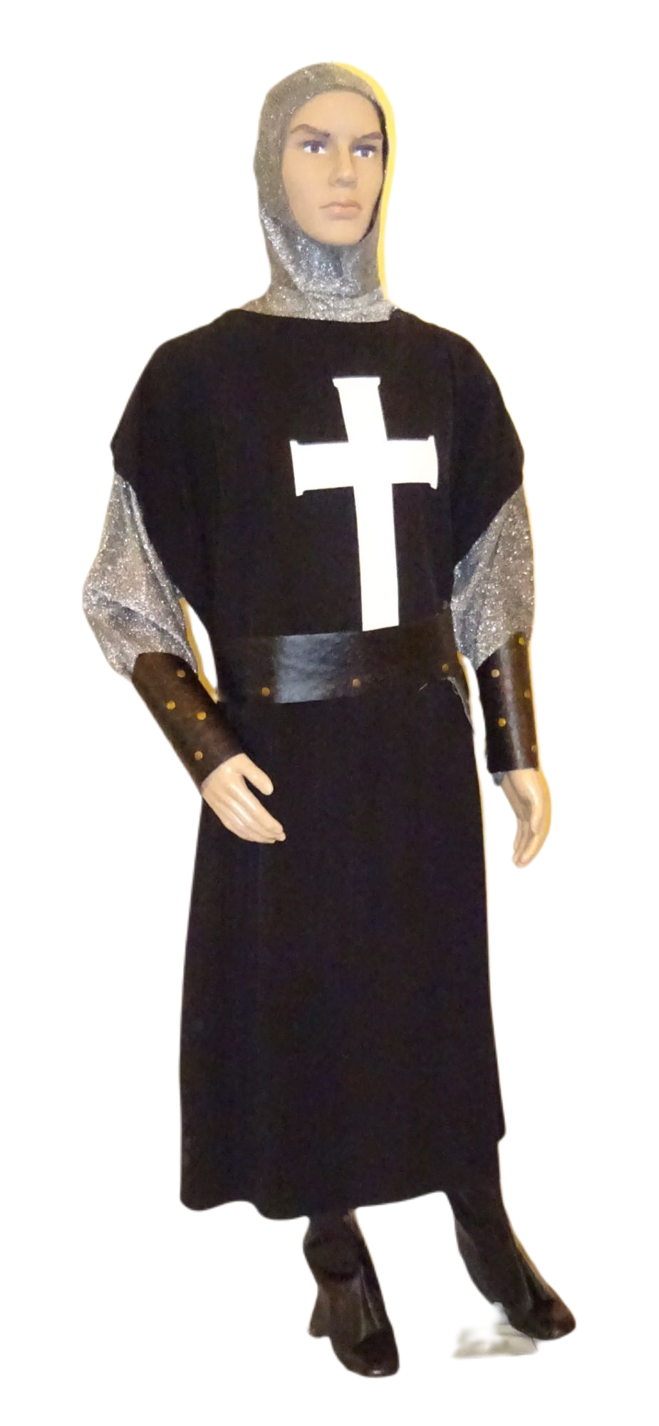 Kreuzritter: Kleid, Umhang, 2 Gürtel, Haube, Helm, Schild, schwarz. Weitere gleiche Artikel K373