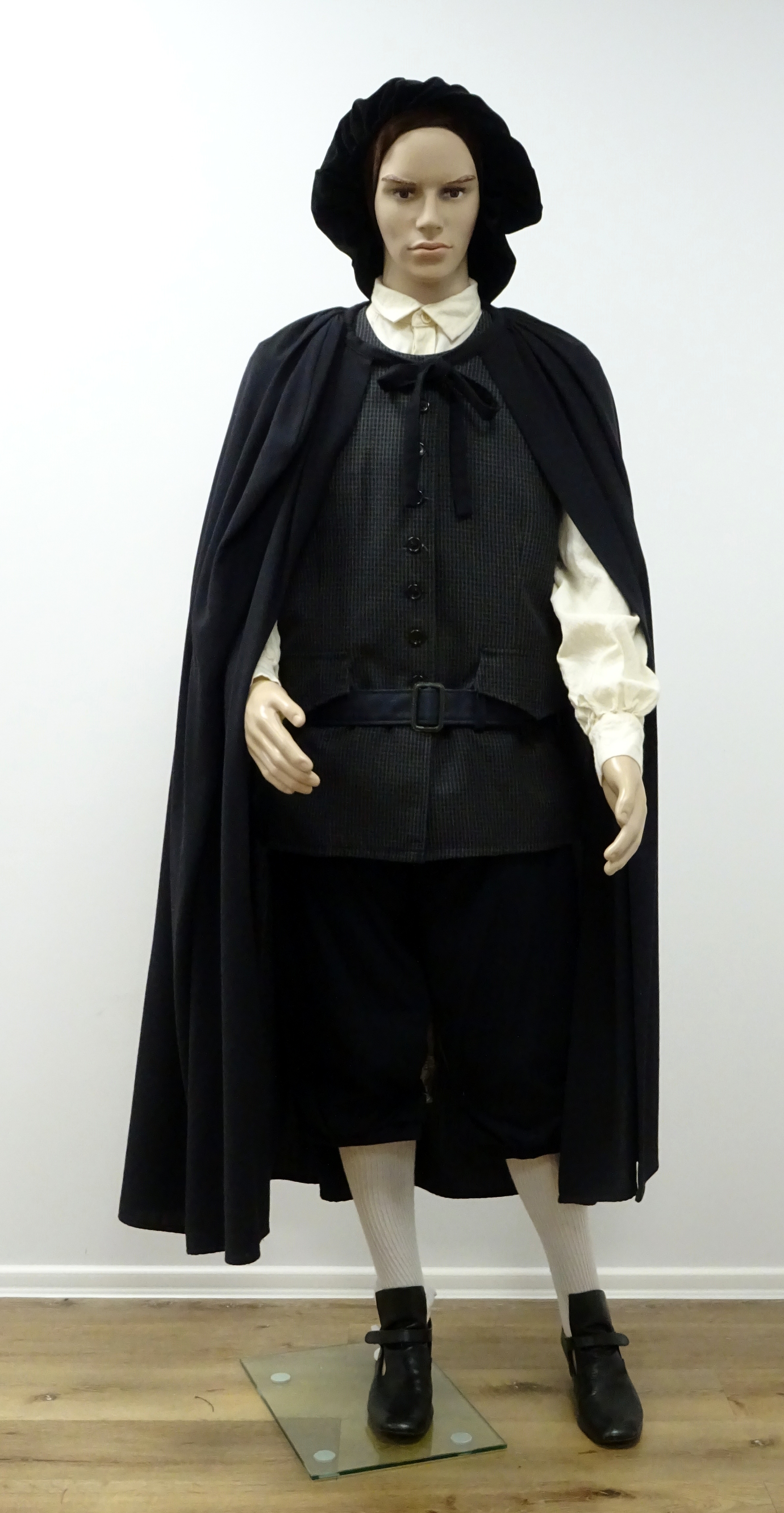 Landgraf: schwarzer Umhang, schwarze 3/4 Hose-Hemd beige-Weste schwarz, kleines caro mit Gürtel