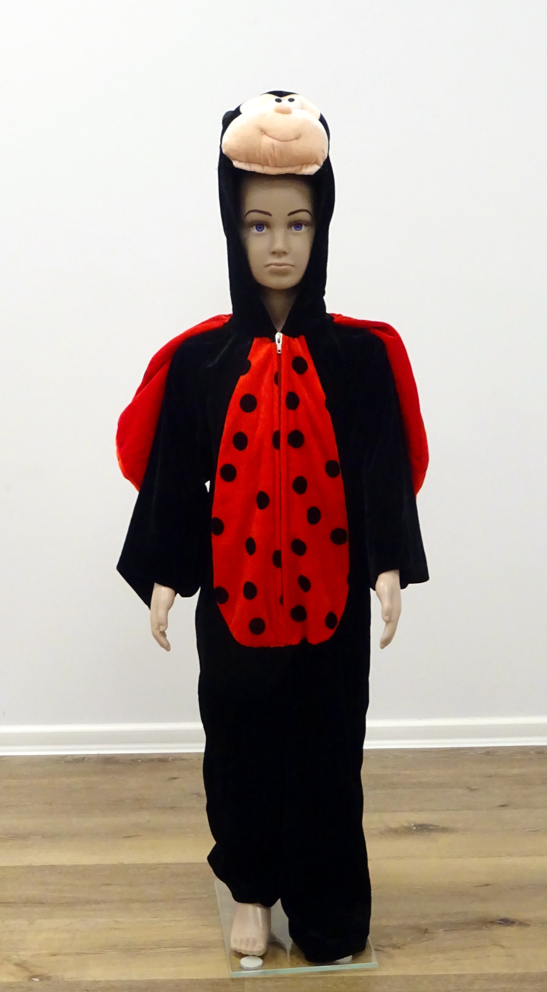Marienkäfer, Anzug, Schwarz mit rot/schwarze Punkte.Weitere gleiche Artikel 3340