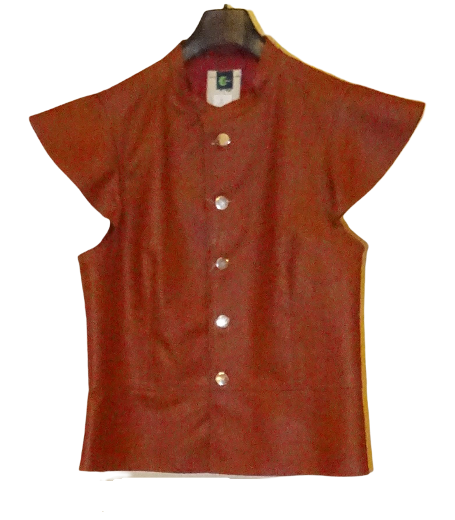 Mittelalterliche Weste, Kunstleder braunrot, Metallknöpfe. Weitere gleiche Artikel H1122, H1125