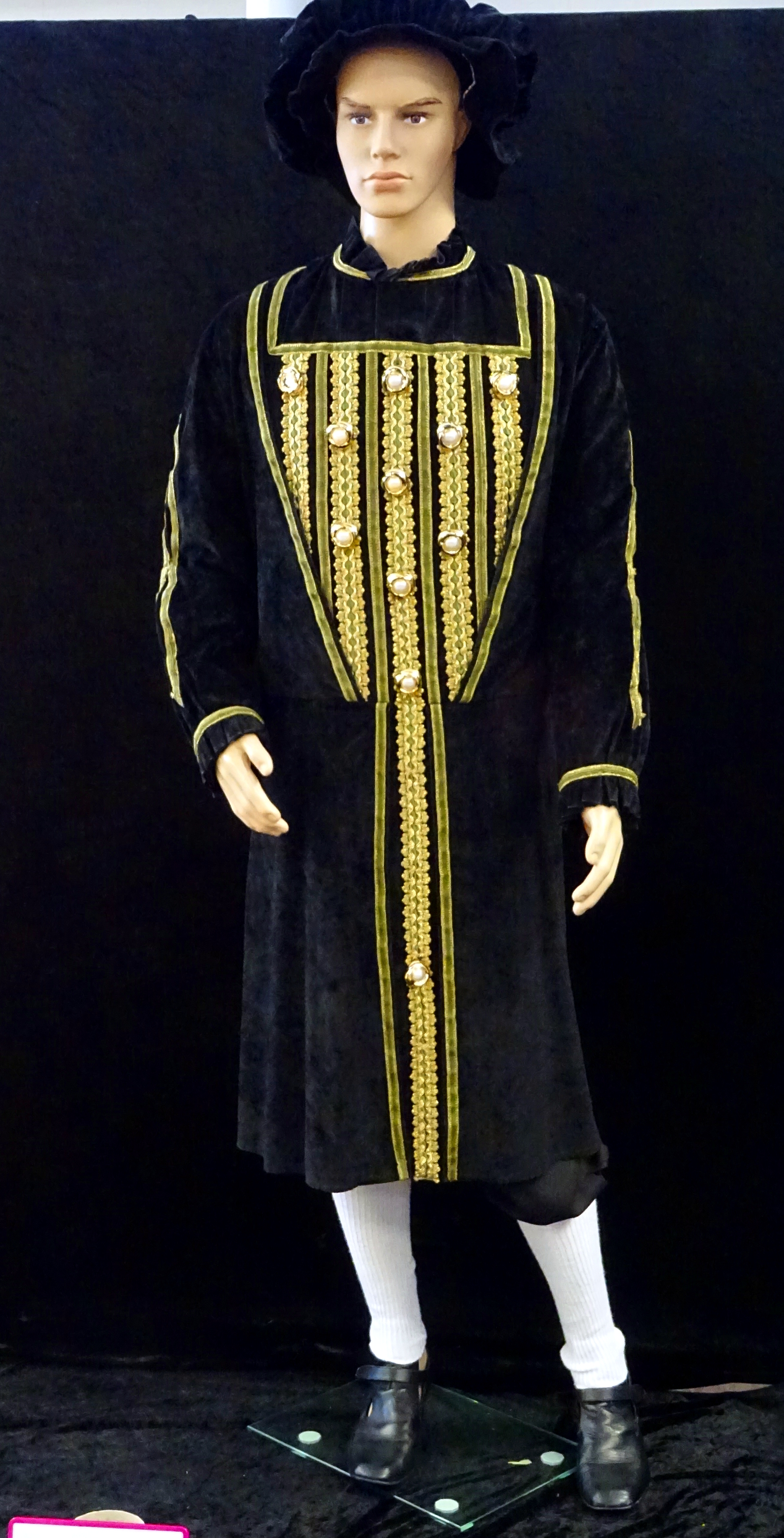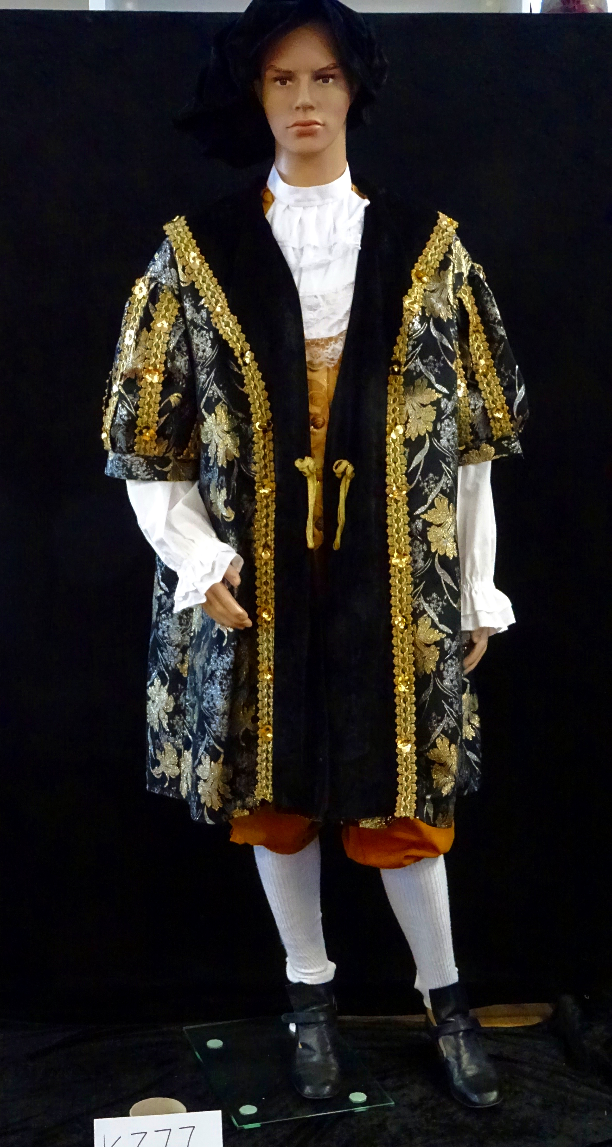 mittelalterlicher König: Gewand m. Gold-Perlmuttknöpfen u. Goldverzierung, knielang, schwarz-gold