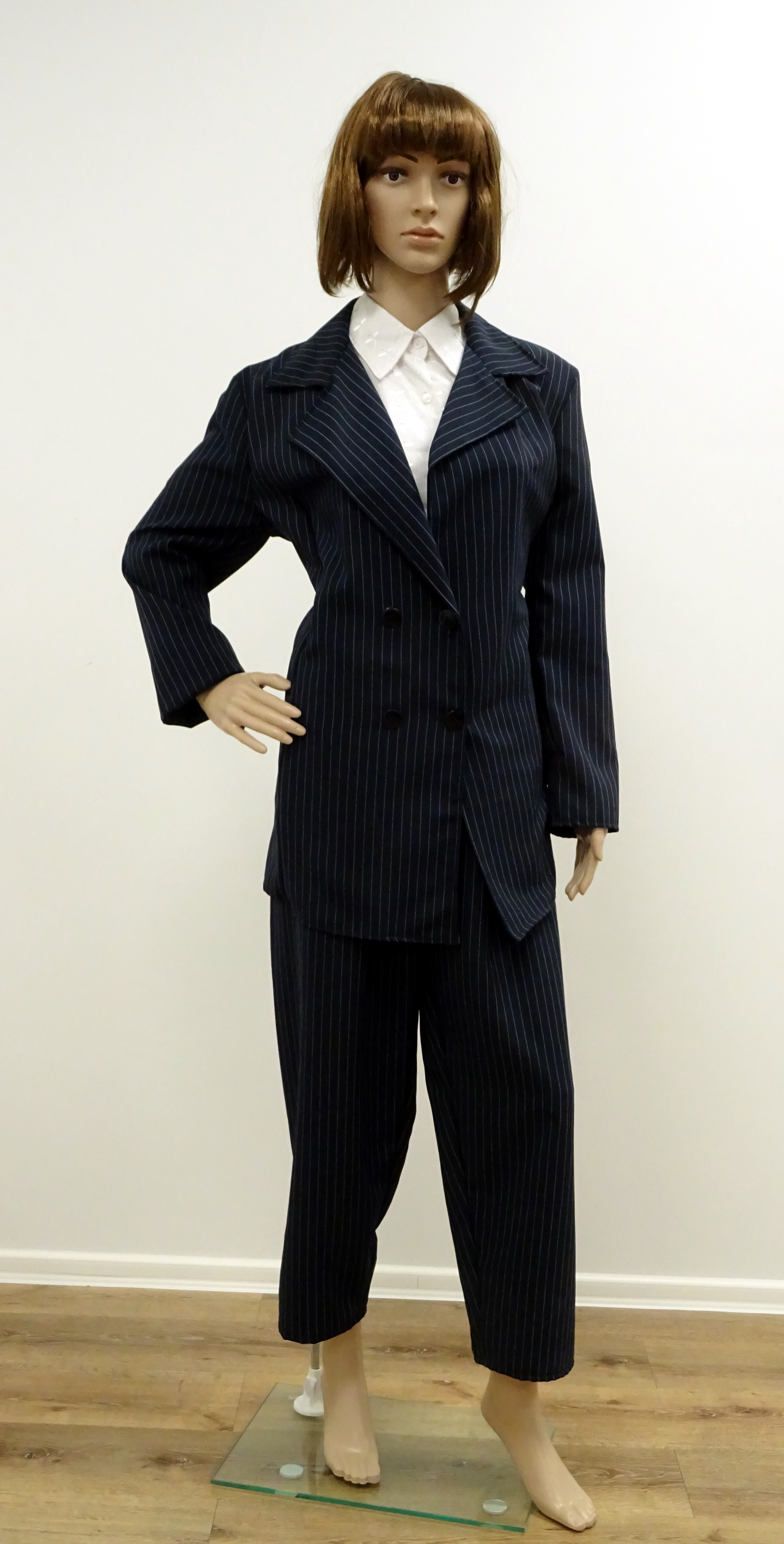 Nadelstreifenanzug, Hose und Jacket, dunkelblau, blau. Weitere gleiche Artikel: A186, A188, A189, A190