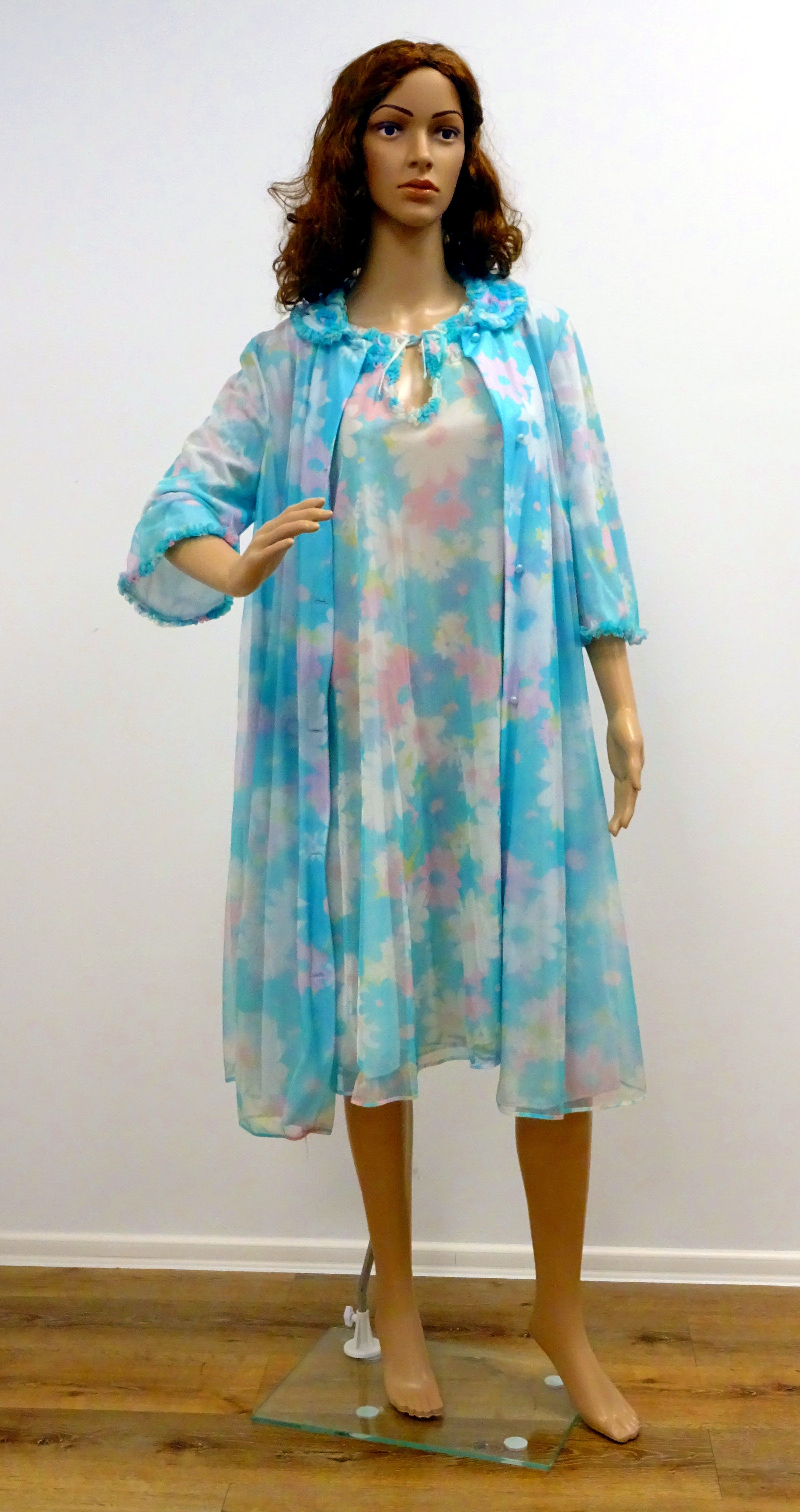 Perlonkleid mit Mantel (geblümt), pink-blau-lila