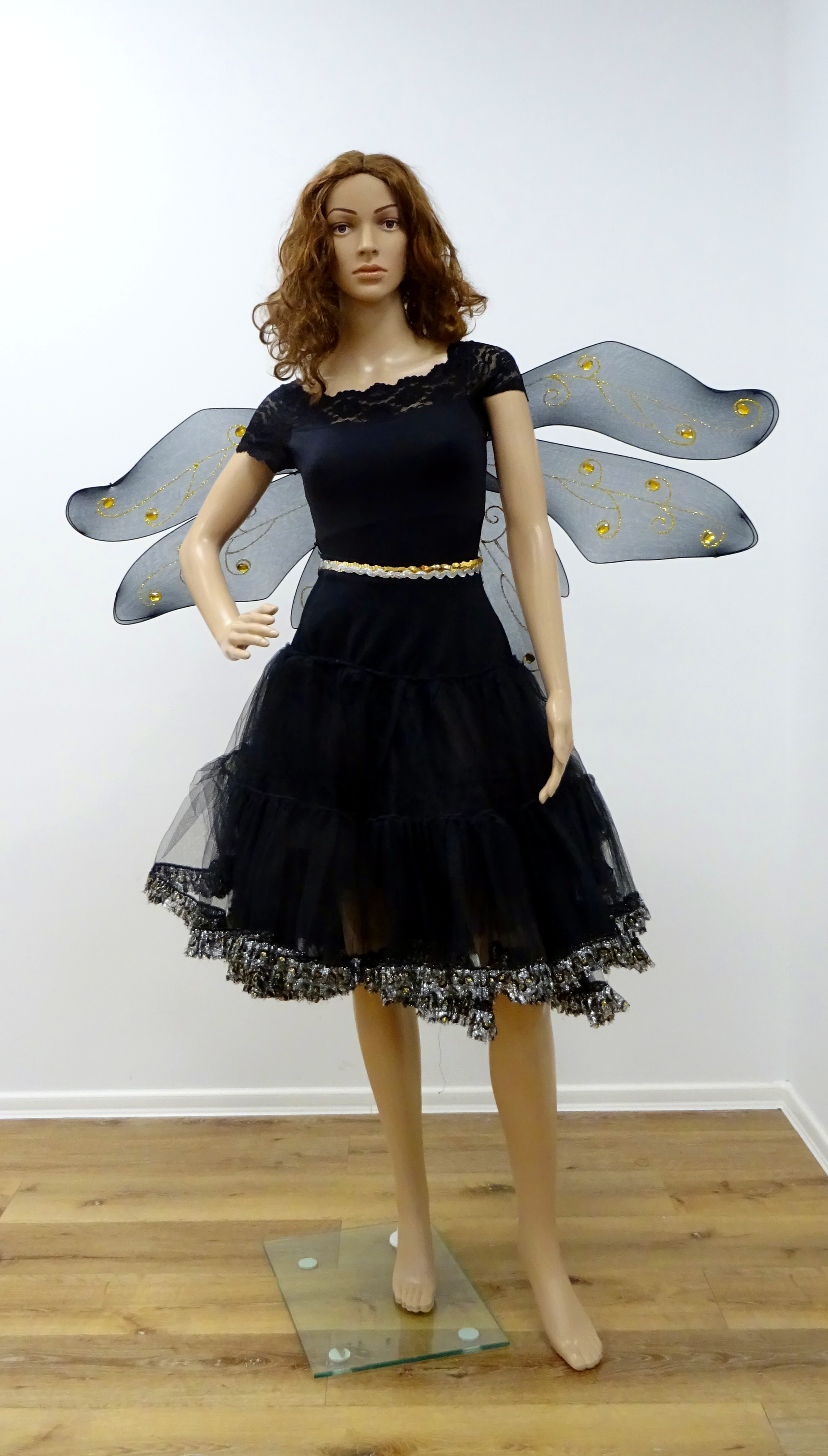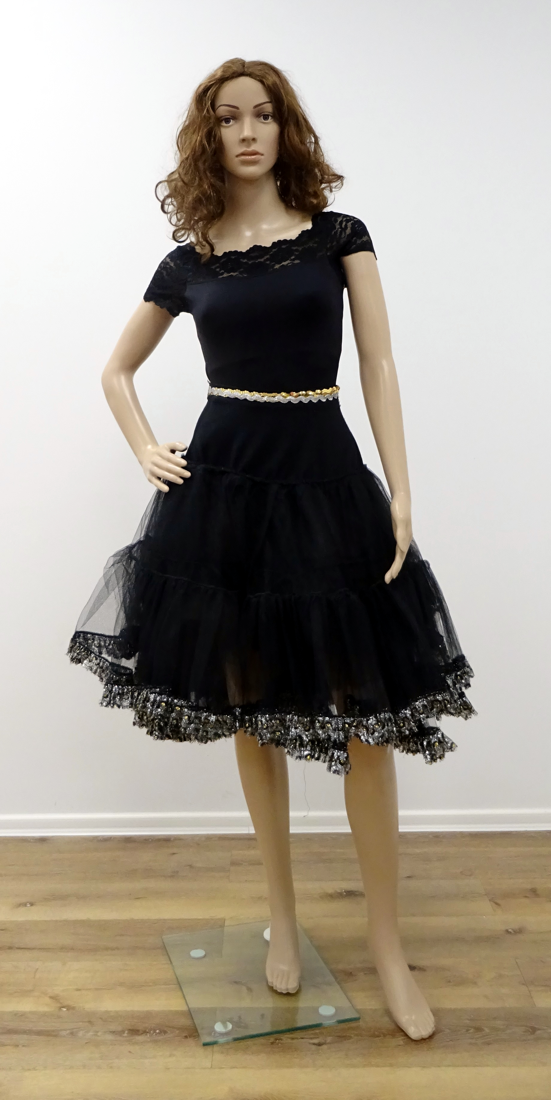 Petticoat: Tüll, schwarz mit silbernen aufgebügelten Pailletten, Weitere gleiche Artikel B136, B137, B138, B139, B140, B141, B142, B143, B144, B145, B146, B147, B148, B149, B150, B151, B152, B153, B154, B156