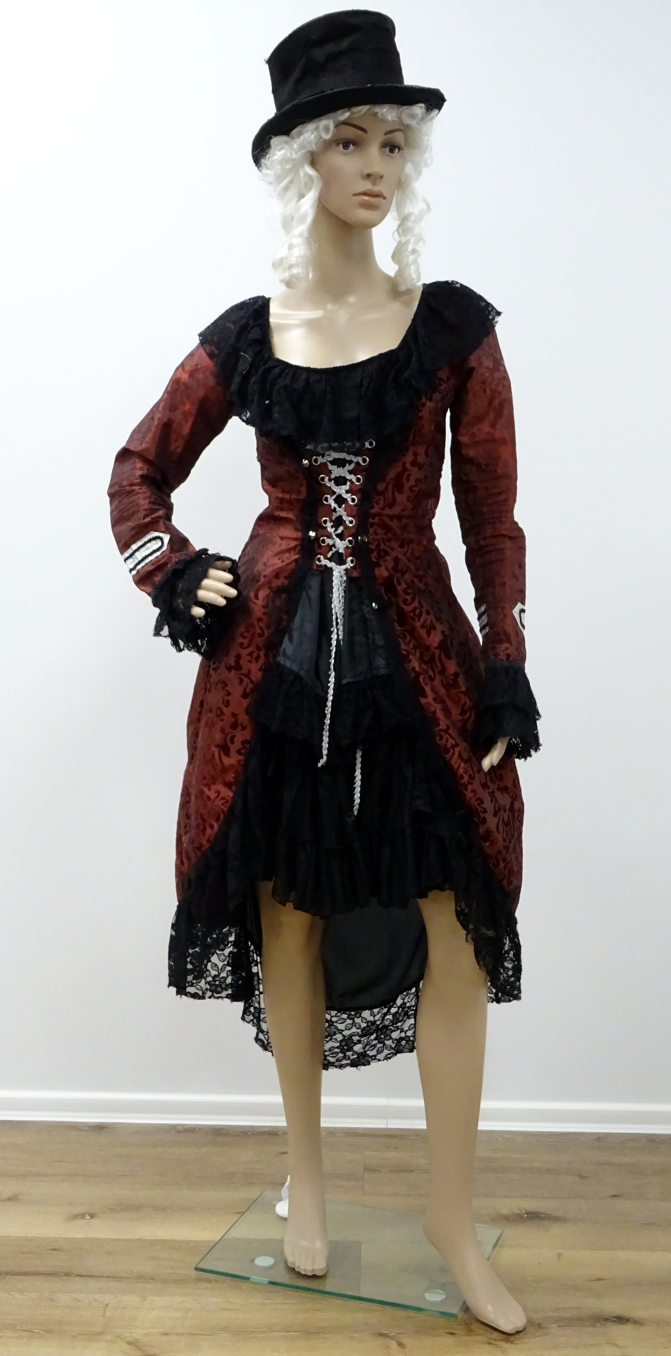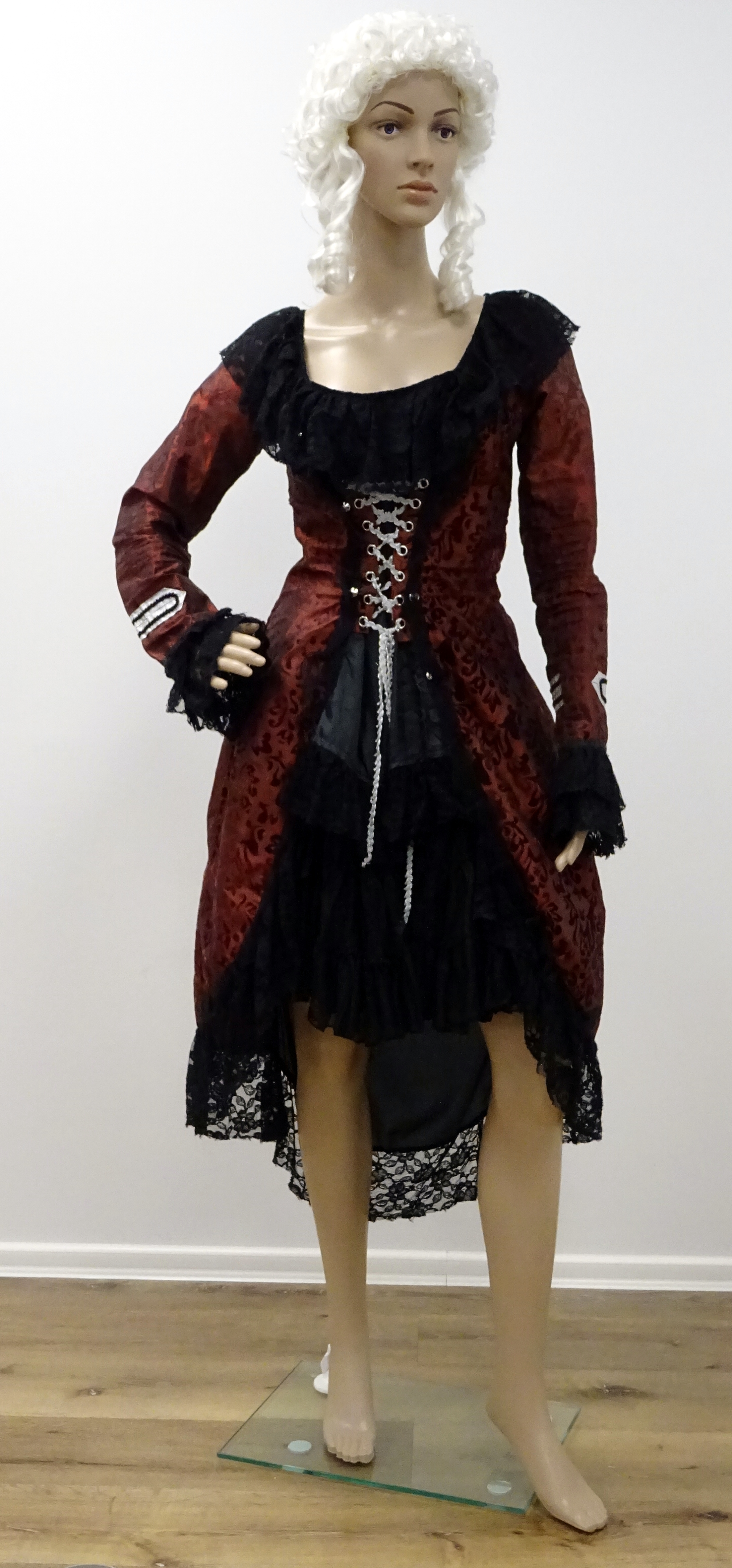 Piratin: Kleid zum Schnüren (vorne kurz, hinten lang), Schwarz-weinrot. Weitere gleiche Artikel P1391,P1392