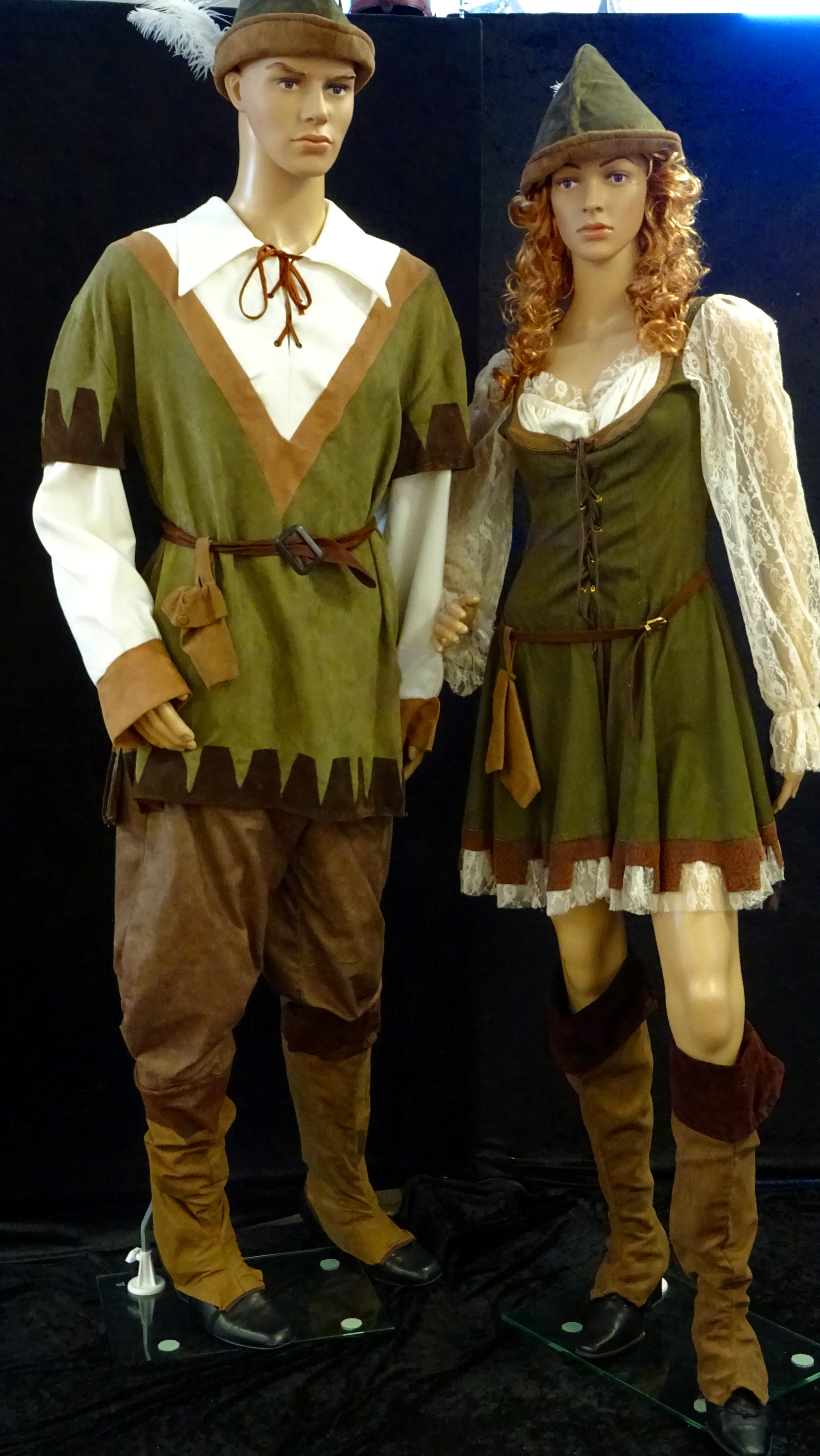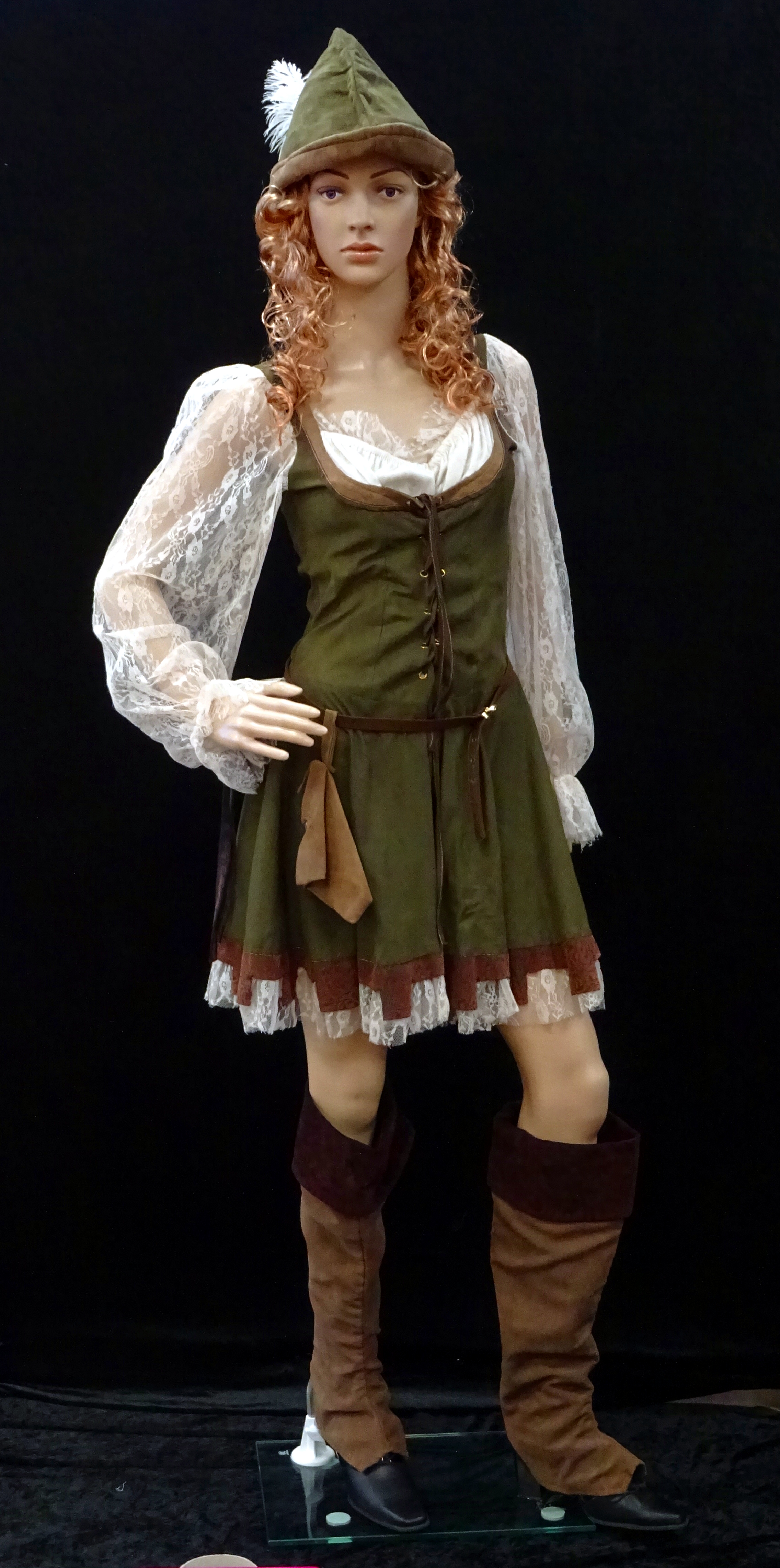 Robina Hood: Kleid, Stulpen, Hut, Gürtel, Geldbeutel, beige-braun.