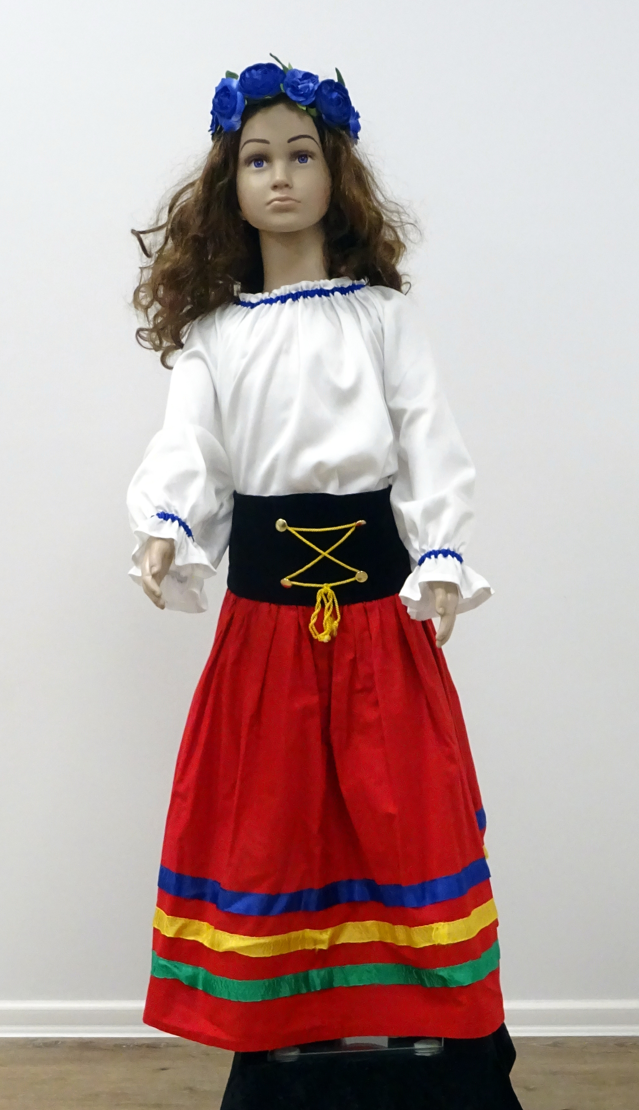 rot, Folklore, Spanisch, kurz, schwarzer Gürtel, bunte Bänder, Junioren. Weitere gleiche Artikel TG1070-TG1077