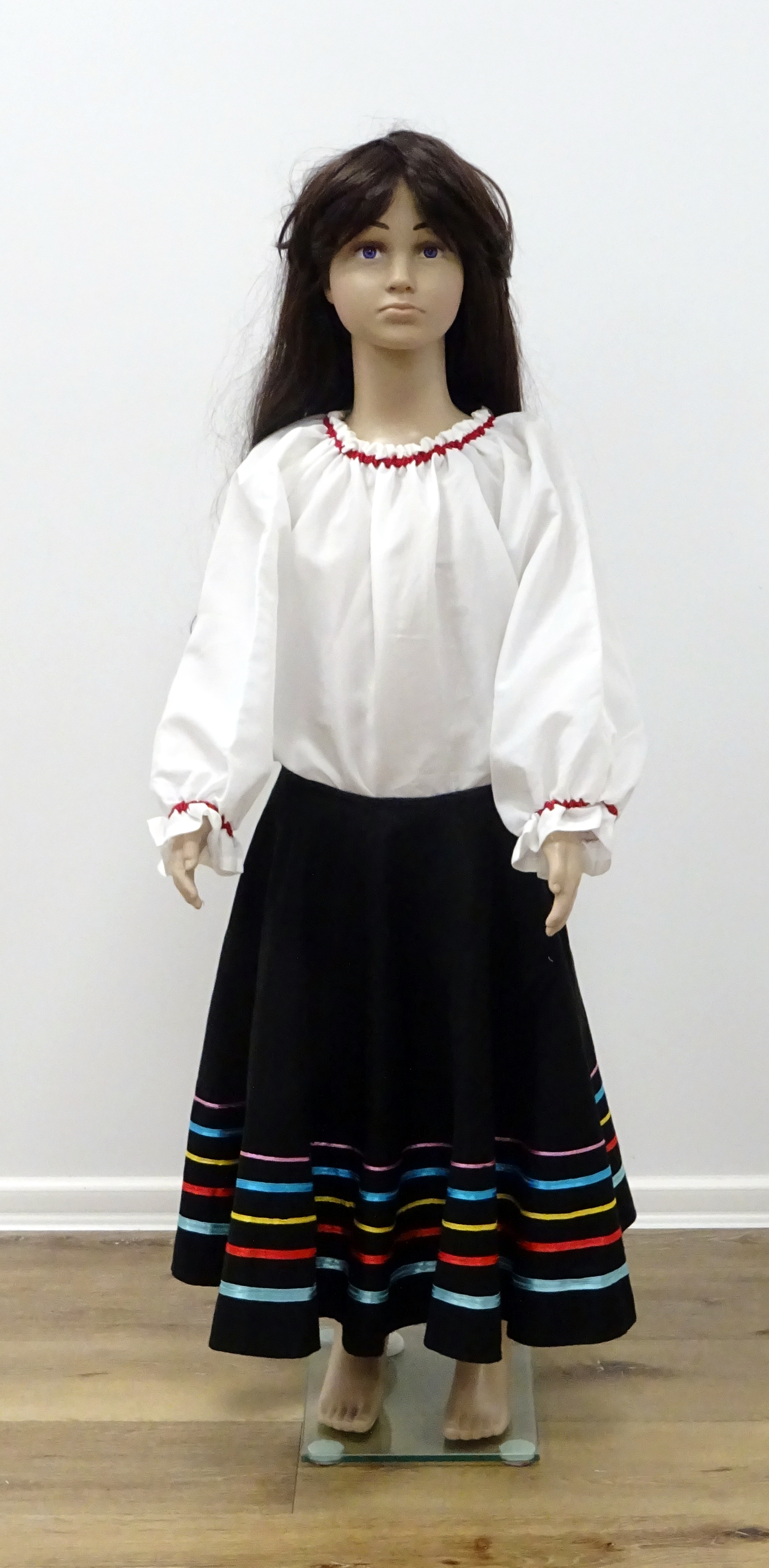 schwarz, knielang, bunte Bänder aufgenäht, Junioren. Weitere gleiche Artikel TG1091-TG1097