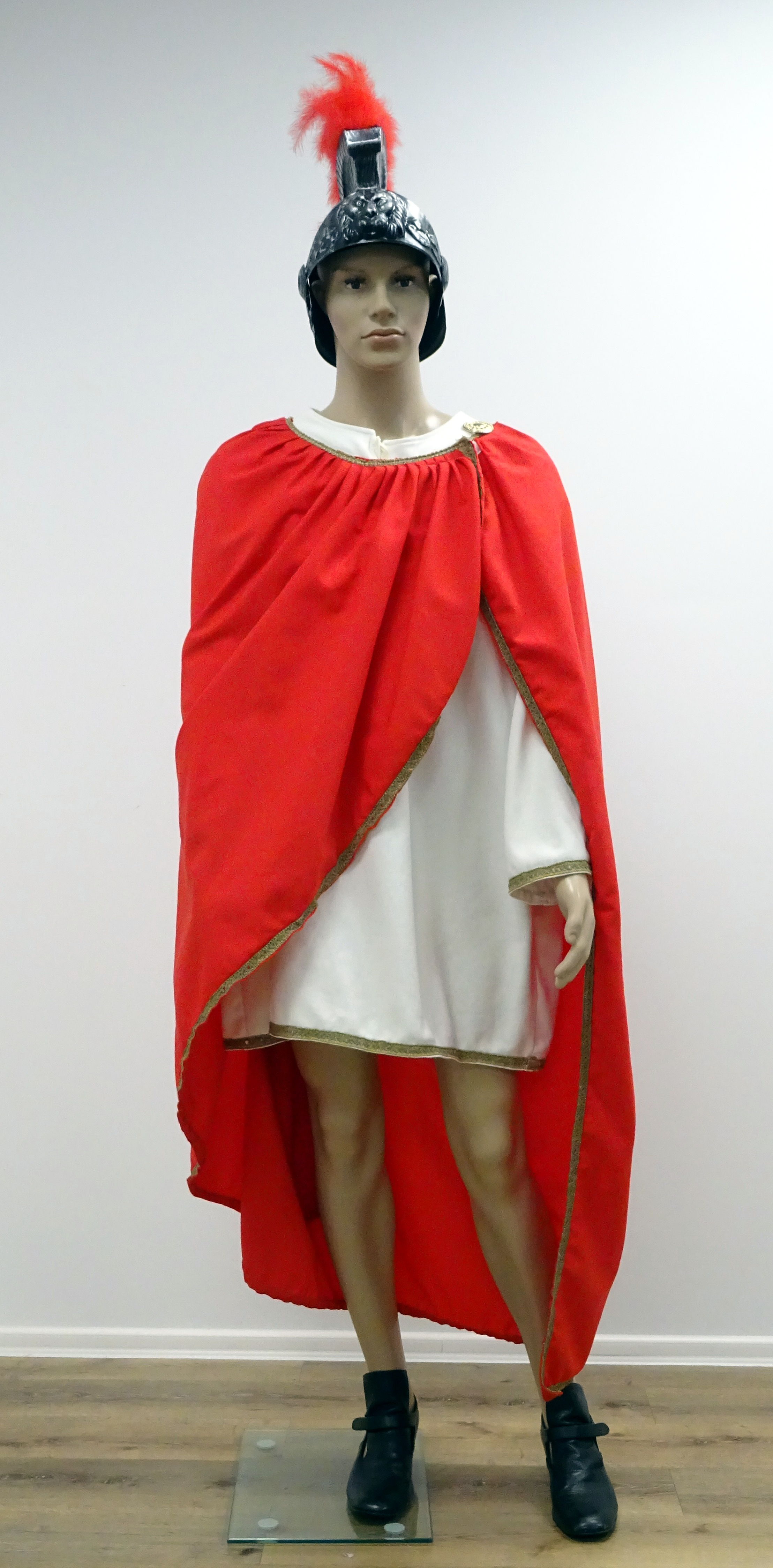 Römer/Cäsar: Knielanges, weißes Untergewand mit angesetztem, langen, roten Umhang. Weitere gleiche Artikel R074-R083