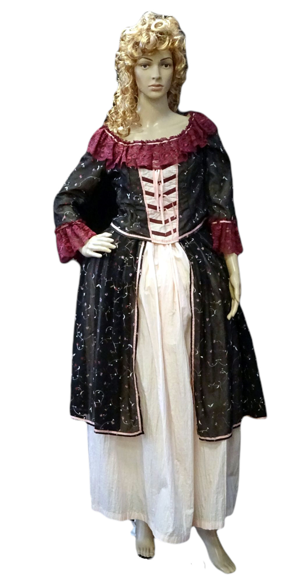 Rosendame: Hüftpolster, geblümtes Oberteil, Rock rosa und geblümt., rosa-schwarz. Weitere gleiche Artikel R282