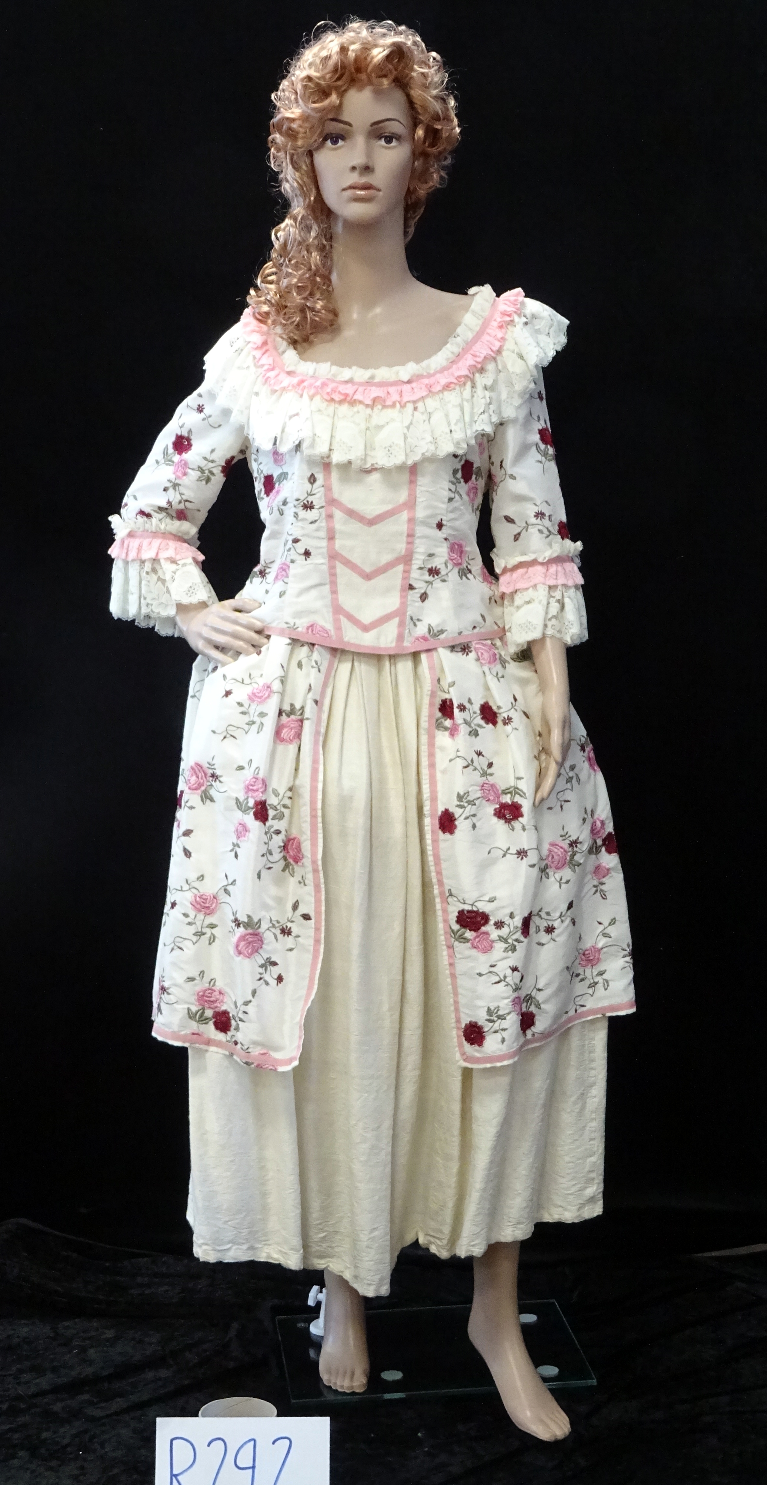Rosendame: (Oberteil, Rock u. Hüftpolster) m. Rosenstickerei, Rockteil gecrasht, creme-rose