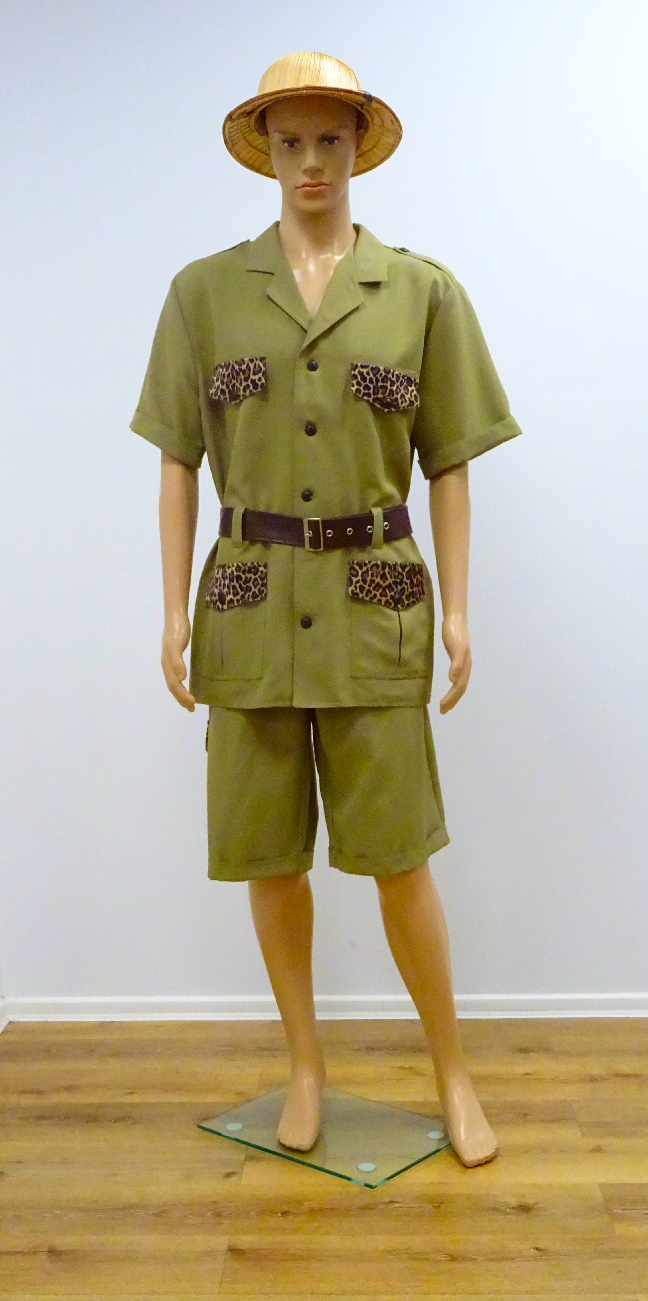 Safari-Anzug: Hemd m. Gürtel, kurze Hose (Mit Tigerlook an Taschen u. Gürtel), oliv. Weitere gleiche Artikel S372, S373