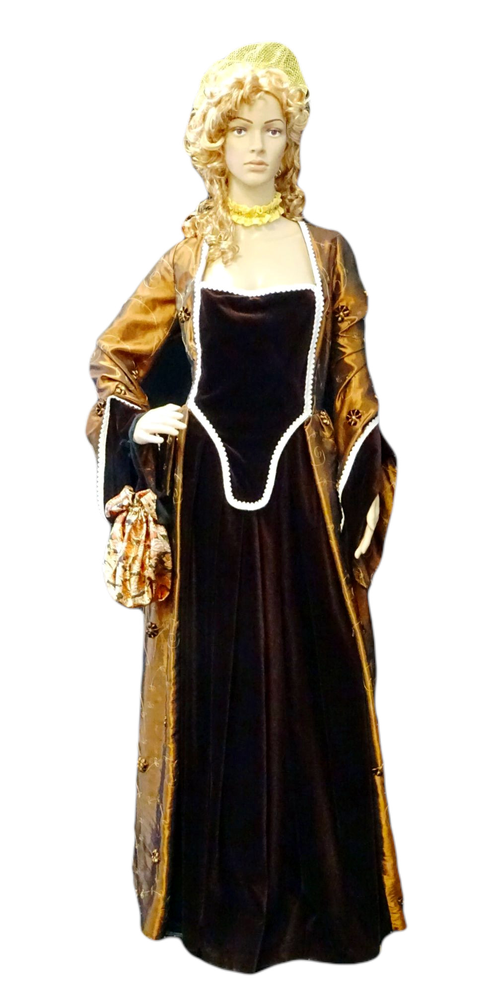 Schloßherrin: Kleid braun mit Stickerei-Einsatz Rock + Oberteil brauner Samt 4 Stück