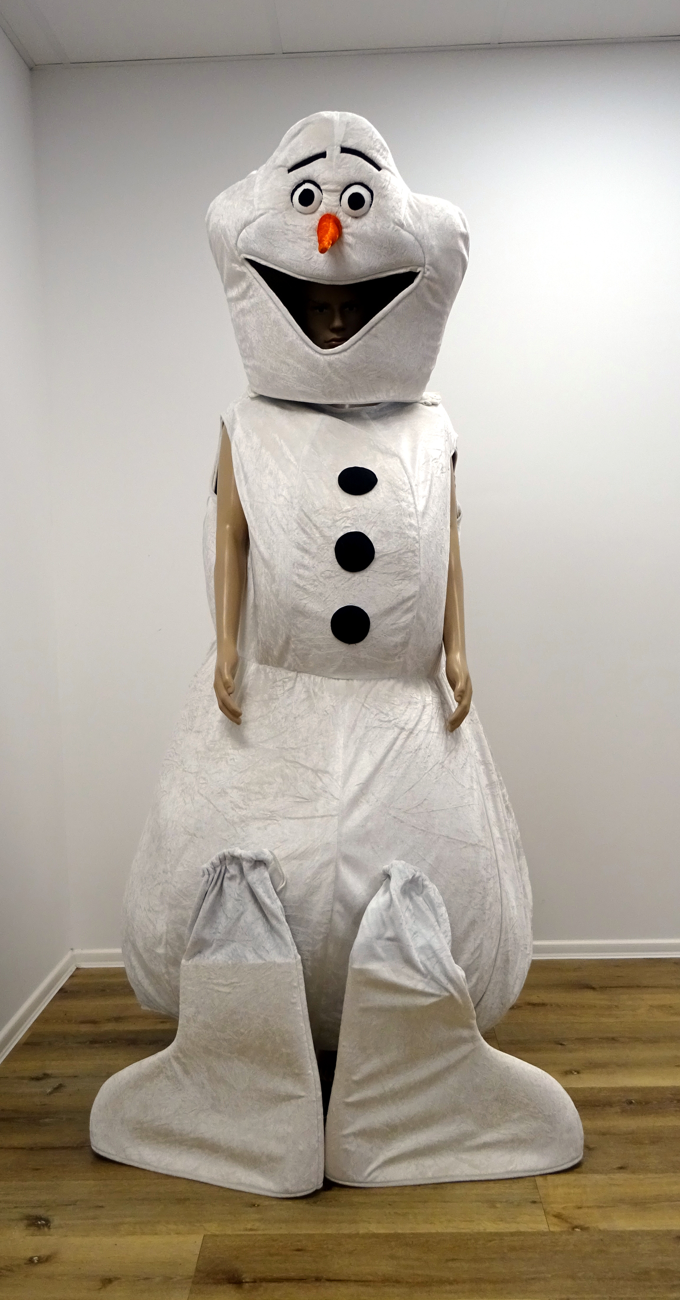 Schneemann Olaf(Eiskönigin) : Unterfüttertes Gewand mit eingesetztem Reifen, große Kopfhaube, Beinstulpen