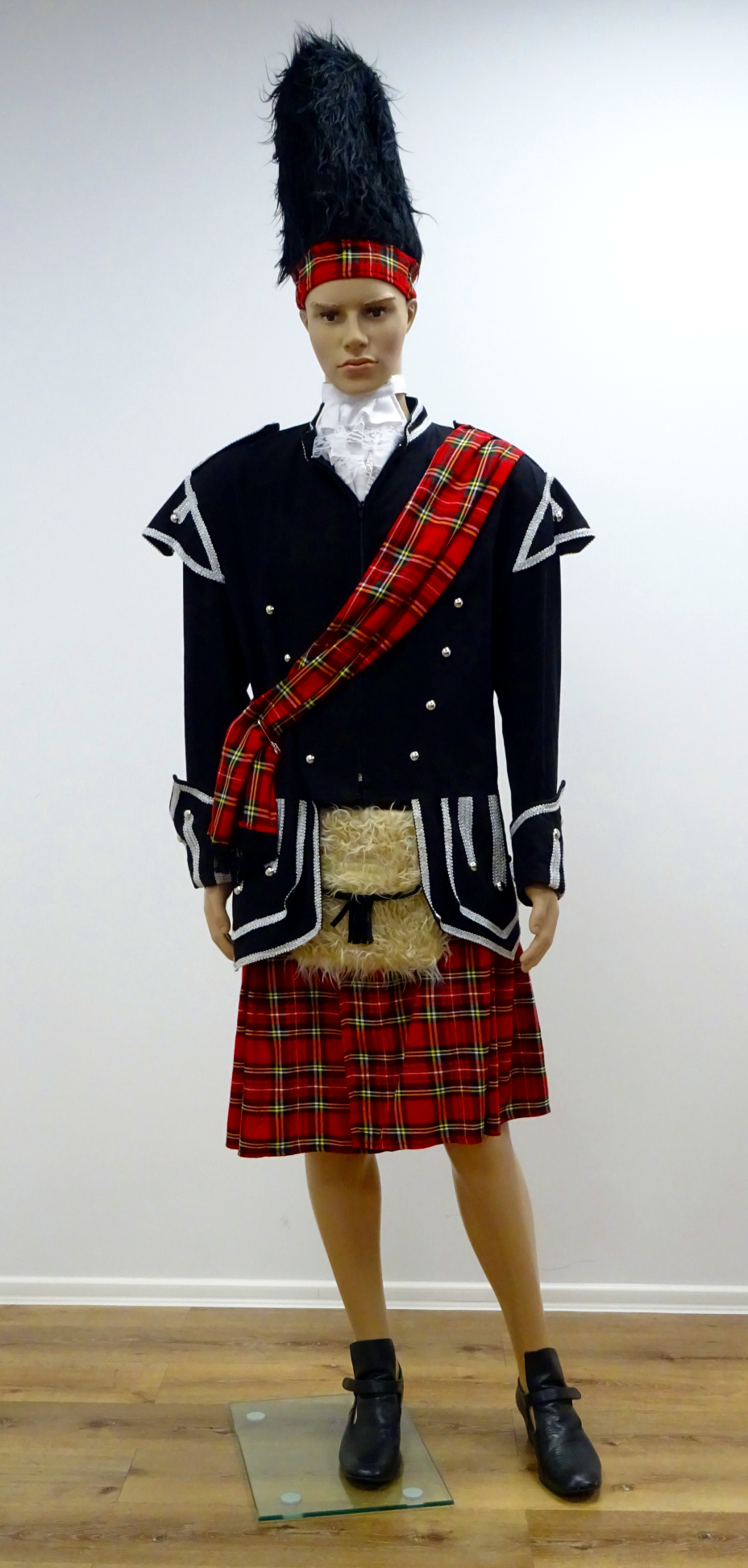 Schotte Connery, 5 Teile, Jacke, Rock, Scherpe, Schamüschen, Hut, rot-kariert