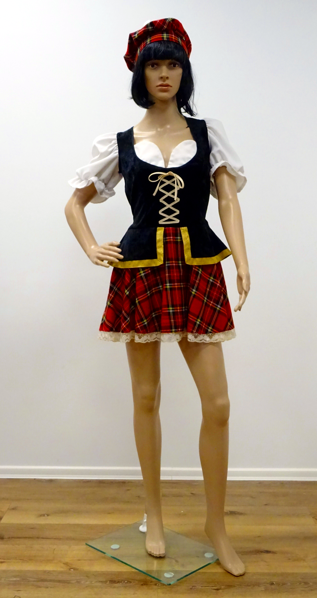 Schottin: Kleid m. Mütze, rot-schwarz-cariert