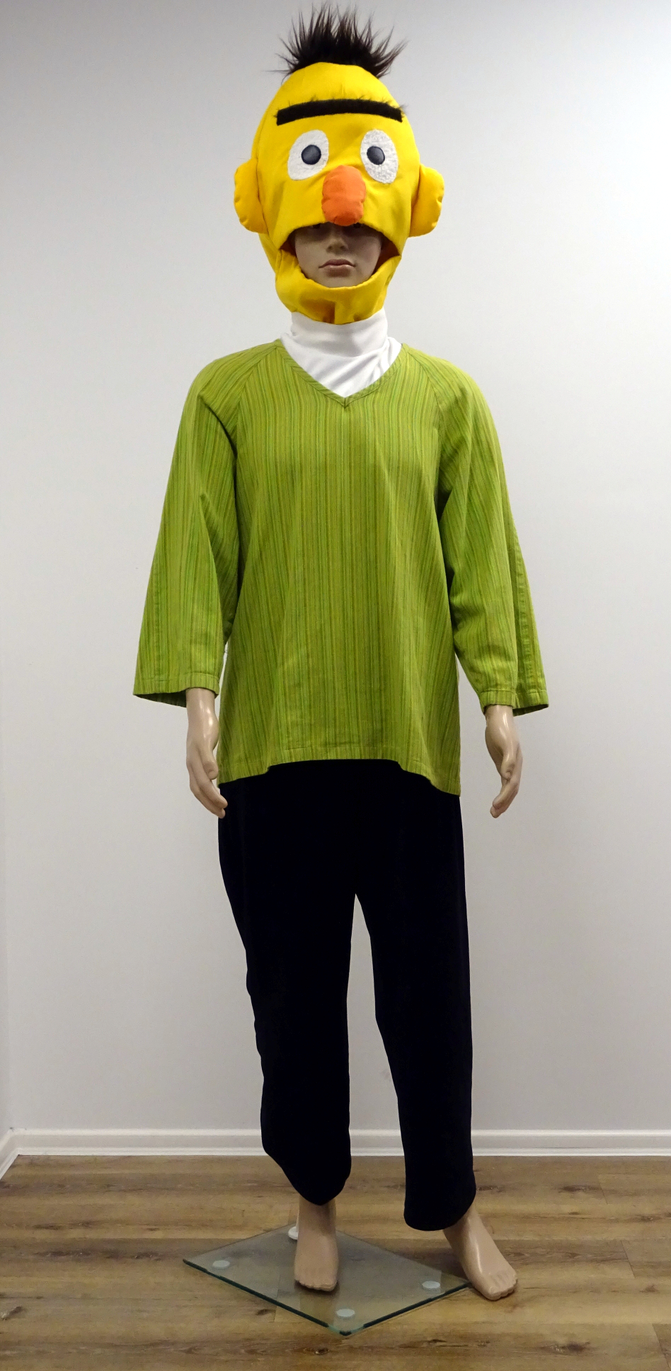Sesamstrasse: Bert: Hemd m. Krageneinsatz (grün-gestr.), Hose (schwarz) und Kopfteil. Weitere gleiche Artikel S534, S535, S572