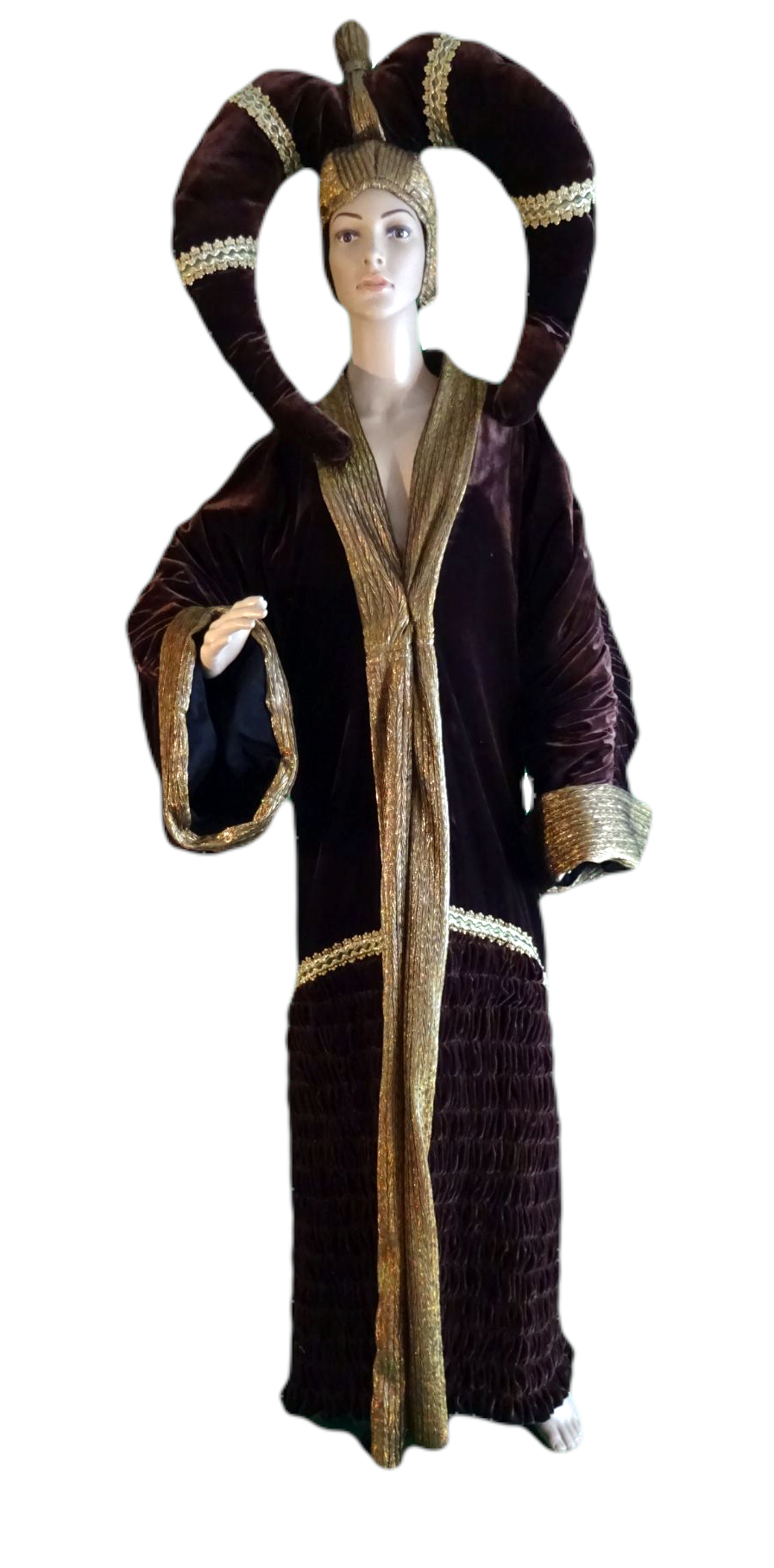 Star Wars Queen Amidala: Mantel, brauner Samt mit Goldbrokat abgesetzt und Kopfschmuck
