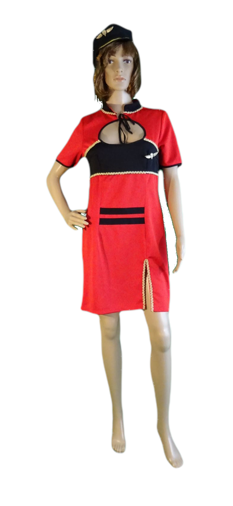 Stewardess Kleid rot mit schwarz,Käppchen schwarz, schwarz