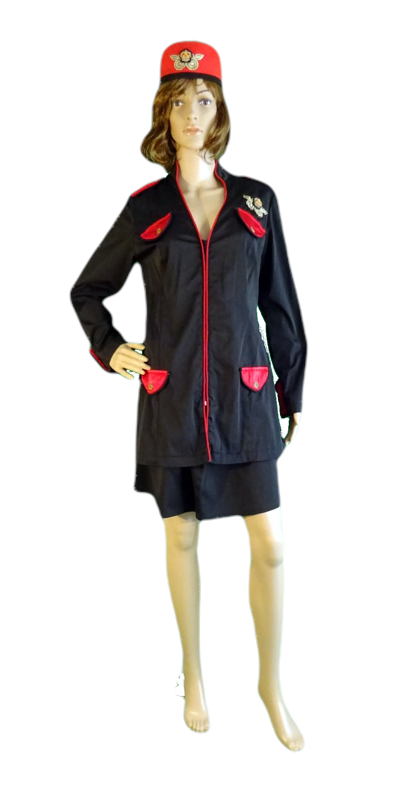 Stewardess Kleid,schwarz mit Kappe (2 Abzeichen, bei Verlust je Abzeichen €2), schwarz