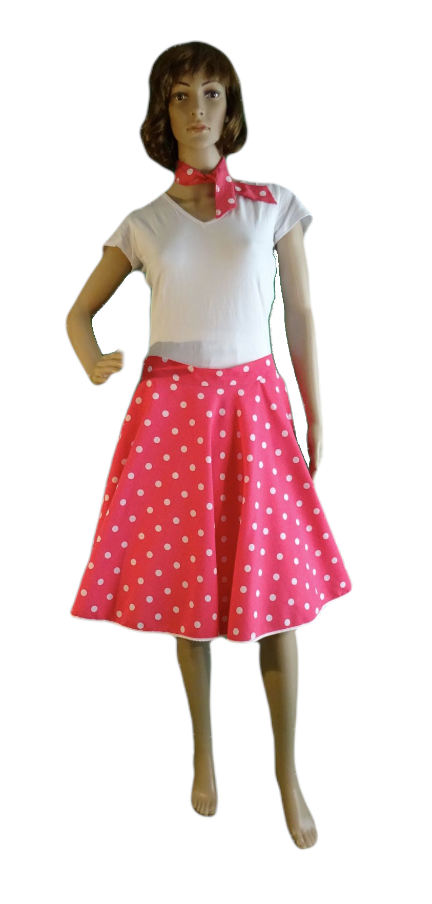 Tellerrock, (kurz) pink mit weißen Punkten. Weitere Artikel Y0340, Y0340a