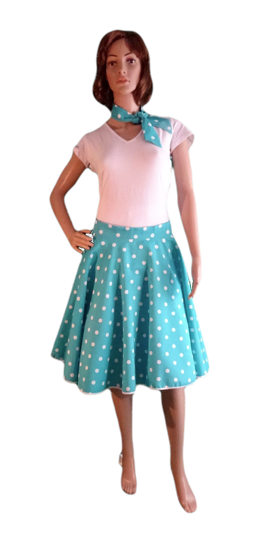 Tellerrock, (kurz) türkis mit weißen Punkten. Weitere Artikel Y0347, Y0348
