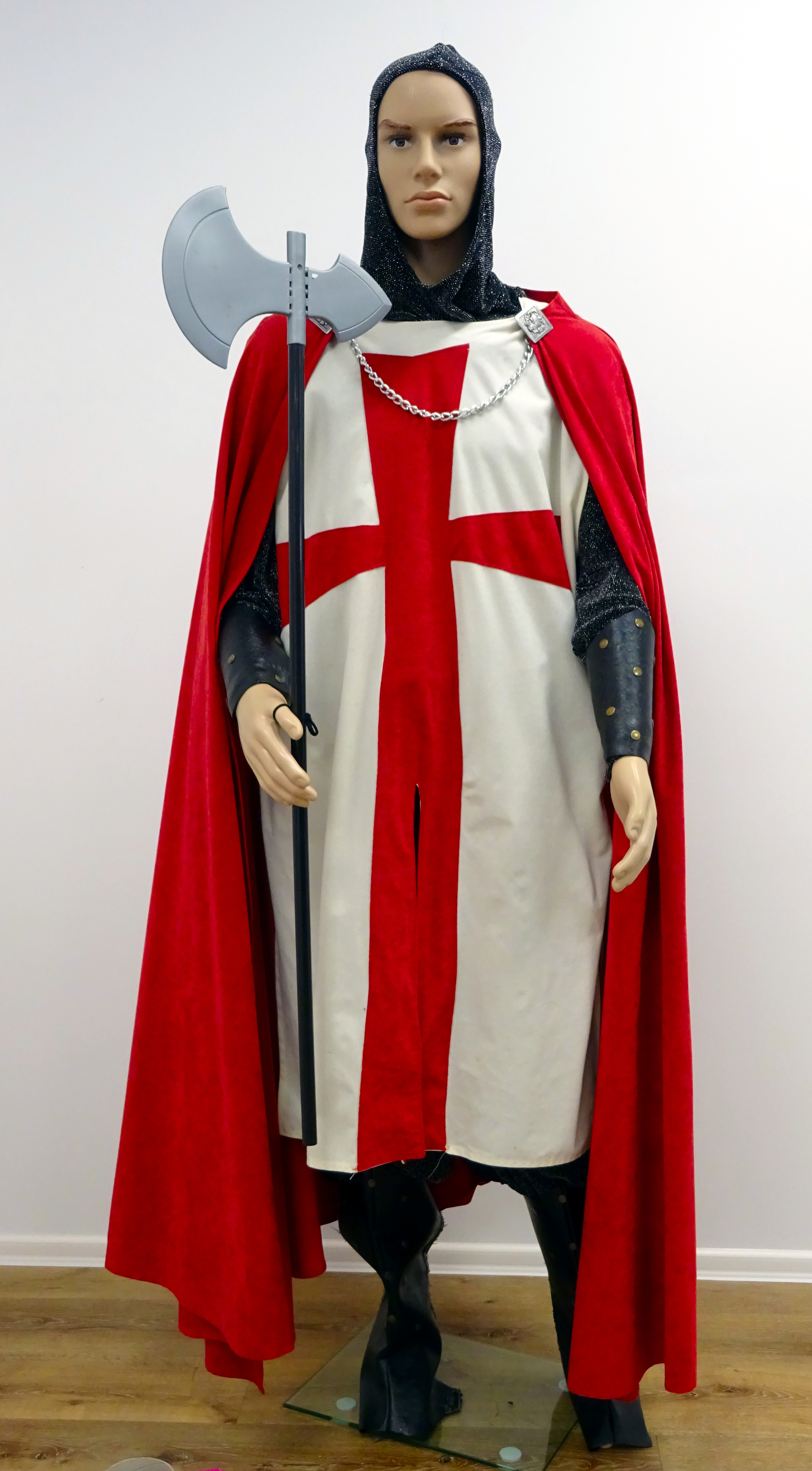 Templer- Kette, Armstulpen, Beinstulpen, Gürtel, Kleid, Hemd, Hose u. Umhang, Kopfm., rot/beige. Weitere gleiche Artikel T362-T364
