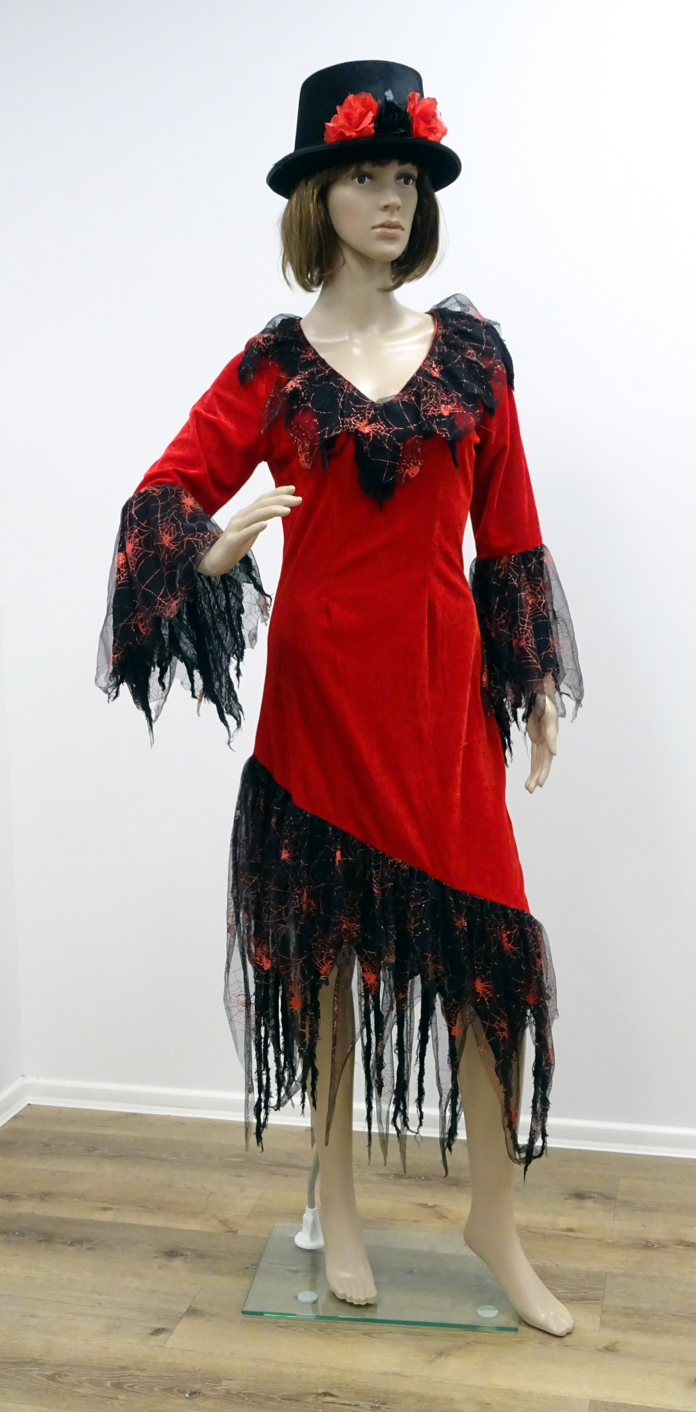 Teufelin : Kleid (Samt) mit Tüllausschnitt, asymetrisch geschnitten, rot. Weiterer gleicher Artikel TE002