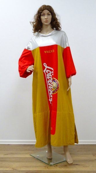Kürbis-Dame 3 teilig Kleid, Perücke und Stiefelgaloschen, orange