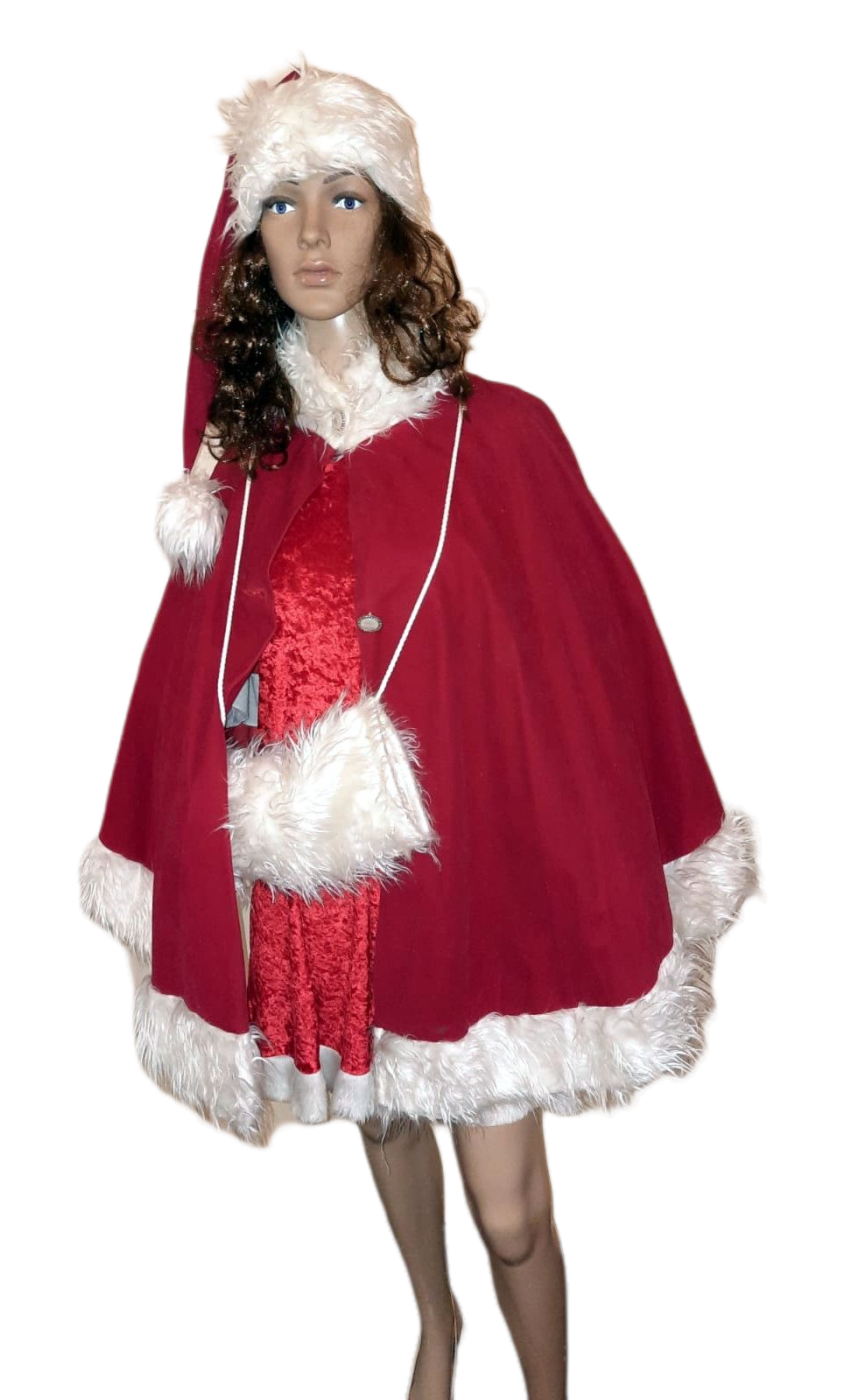 Weihnachtsfrau,rot Cape mit weißem Fellbesatz + weißer Muff