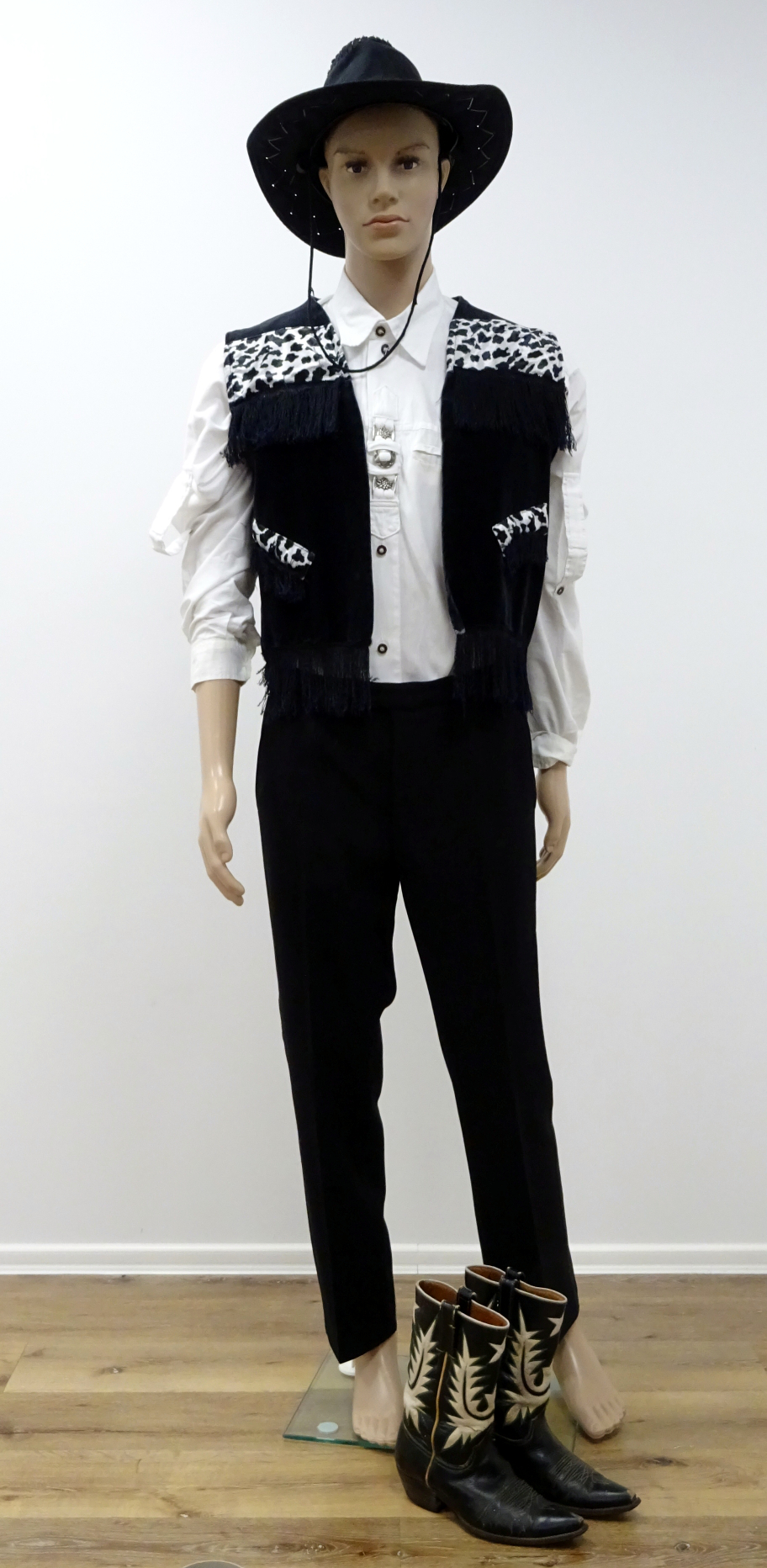 Western- Weste,schwarz mit Kuhmuster,mit Fransen, schwarz mit Kuhmuster