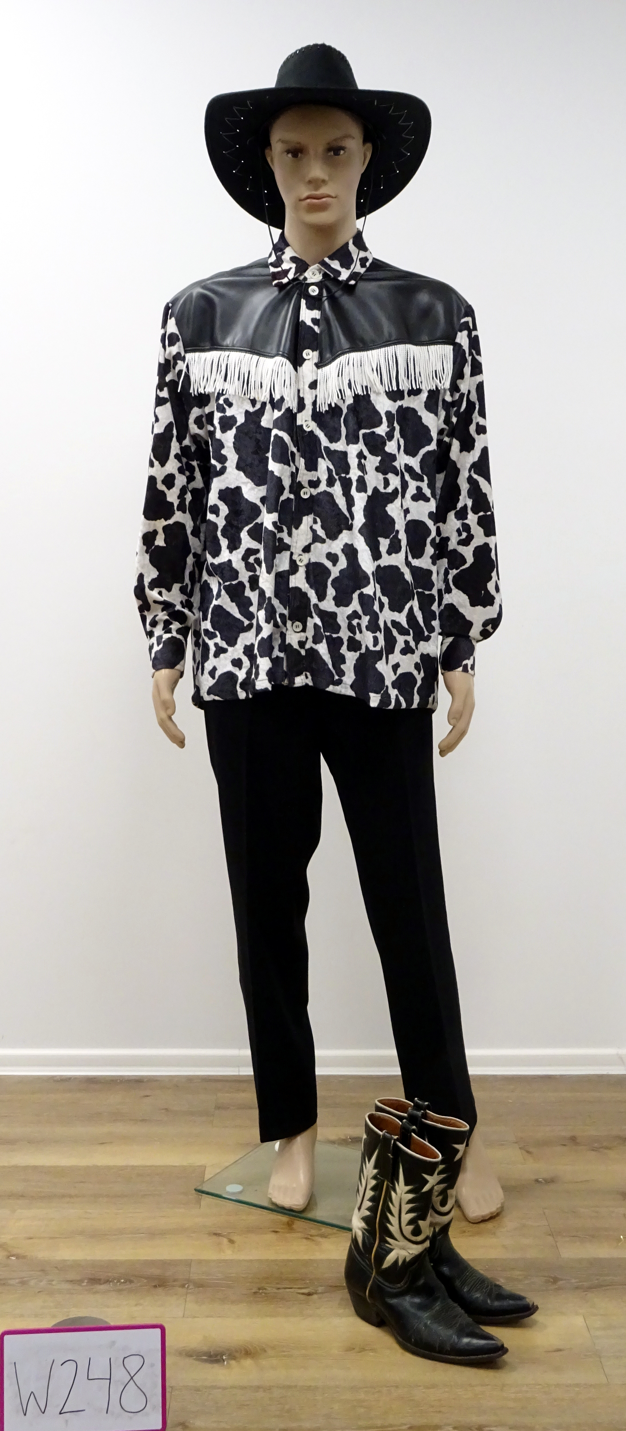 Westernhemd (mit Kuhfellmuster) Schulterpartie mit schw. Lederimit. Abgesetzt, schwarz-weiß. Weitere gleiche Artikel W248-W249
