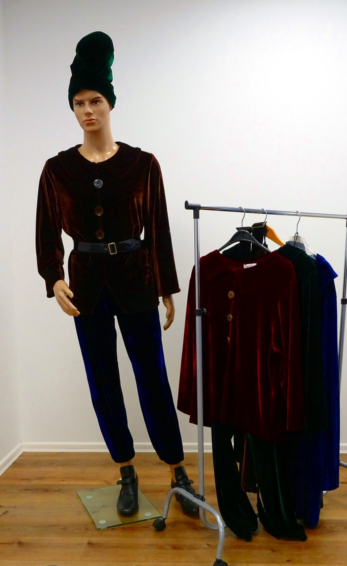 Zwerg, Pannesamt, Hose grün, Oberteil blau, Mütze rot, Gürtel schwarz. Weitere gleiche Artikel Z713
